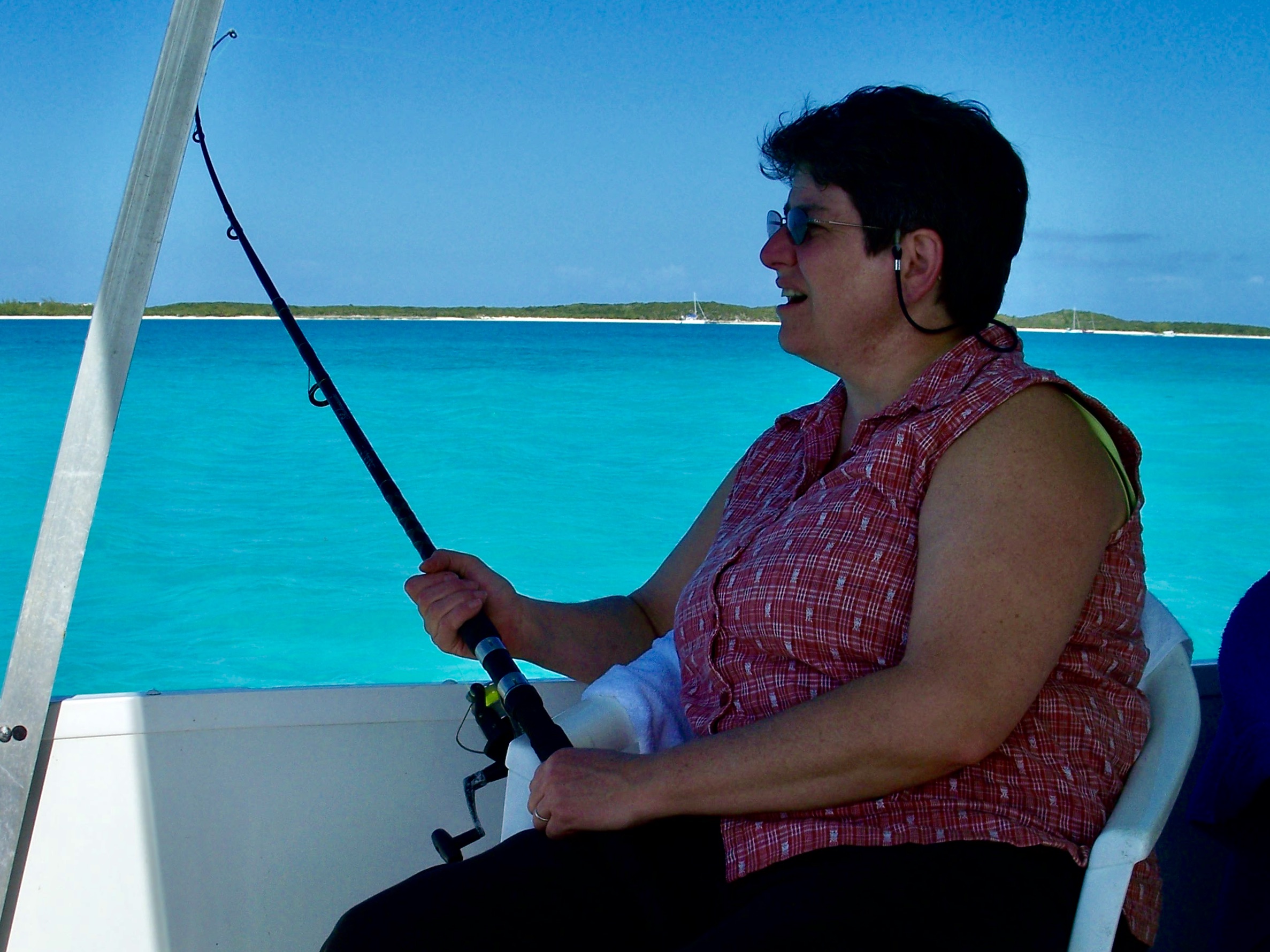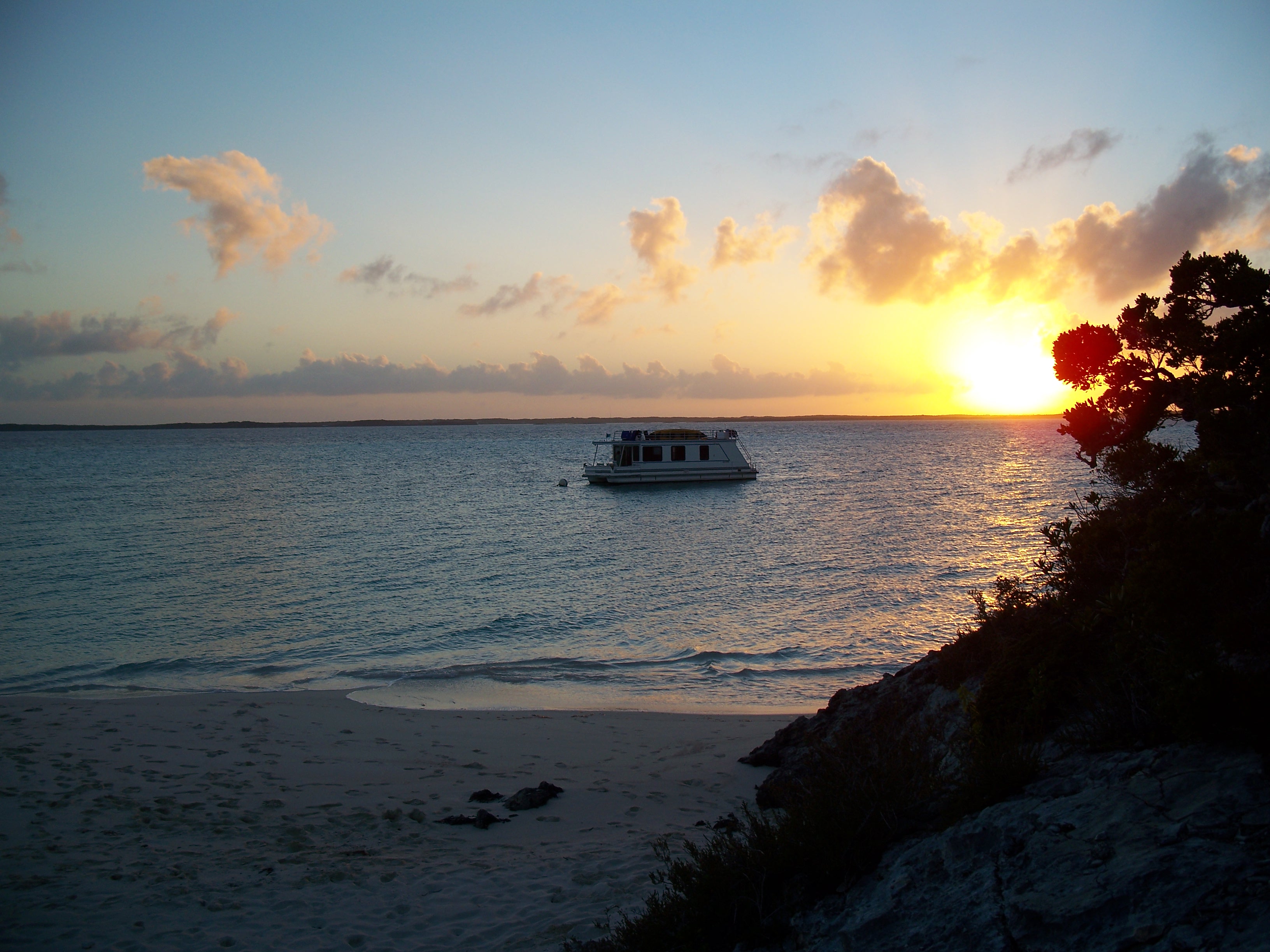 We began looking for a vacation we could enjoy during the Christmas Holiday, excluding Christmas Day, itself. We knew we wanted to go somewhere in the tropics with warm turquoise waters and beautiful. beaches. Our search led us to a company in the Exumas that rented houseboats. George’s Mom and Dad had a large houseboat that had left us with indelible, pleasant memories of lazy summers on the Long Island Sound. We knew it would be a perfect vacation to share with them.