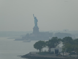 Shortly after stowing our luggage we attended a mandatory lifeboat drill.  In the event of an emergency that might require abandoning the ship we would be alerted with a loud alarm of 7 short and one long blast.  We were to bring our life jackets, warm apparel, a warm hat, and a boat identification card to a specific area where ship personnel would supervise the boarding of lifeboats.   We pulled away from shore at around 6:00pm.  Shortly out of the harbor we passed by the iconic Statue of Liberty.