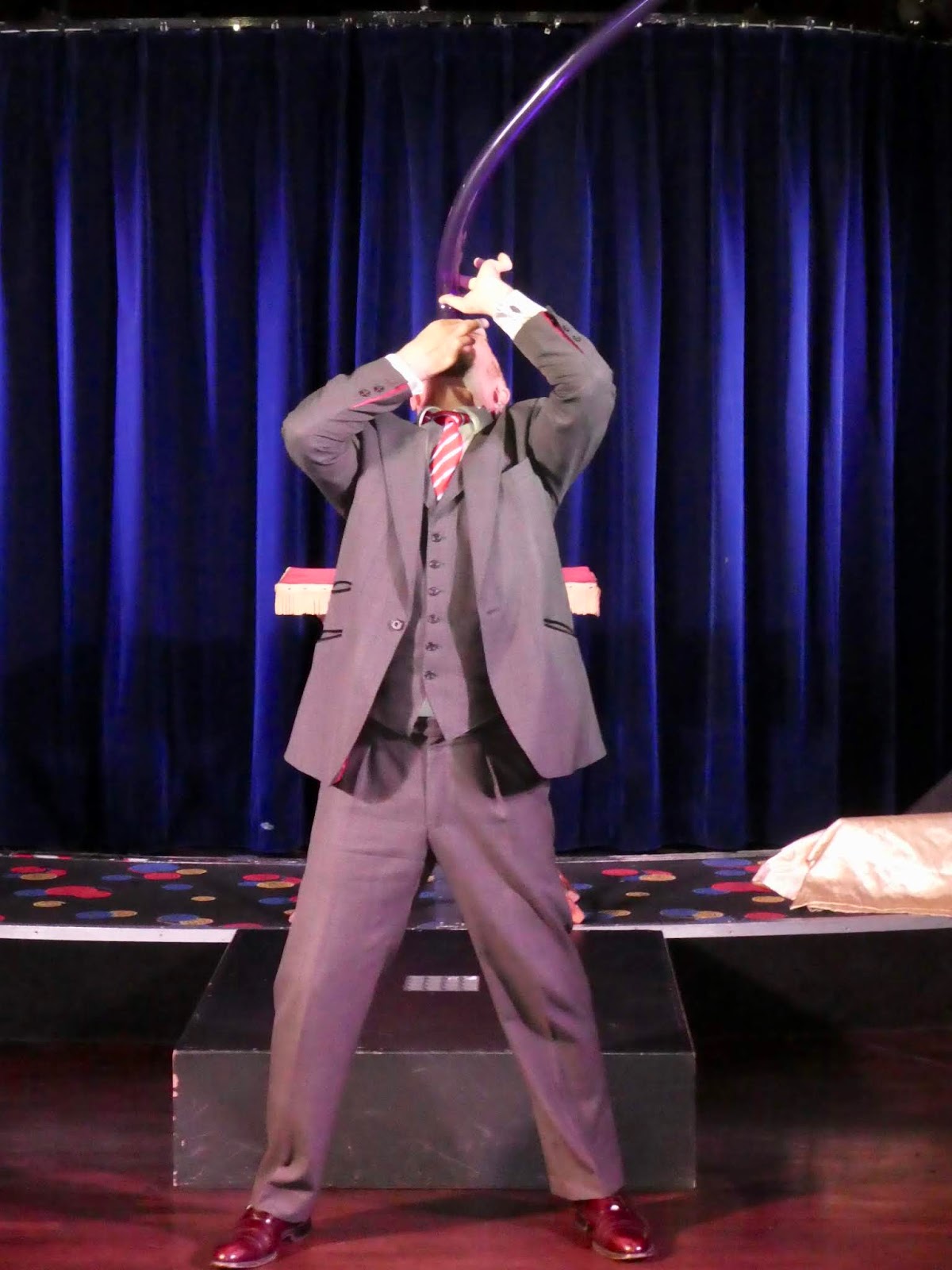 Mr. Wells, demonstrated his sword-swallowing skills with a long balloon (so as not to frighten the many children), made bottles of wine appear out of thin air, astonished us with card tricks and other slight of hand magic, all with a theatrical flair, that brought to mind our dear friend Dobbs.  What a way to cap off an “adventurous” day.