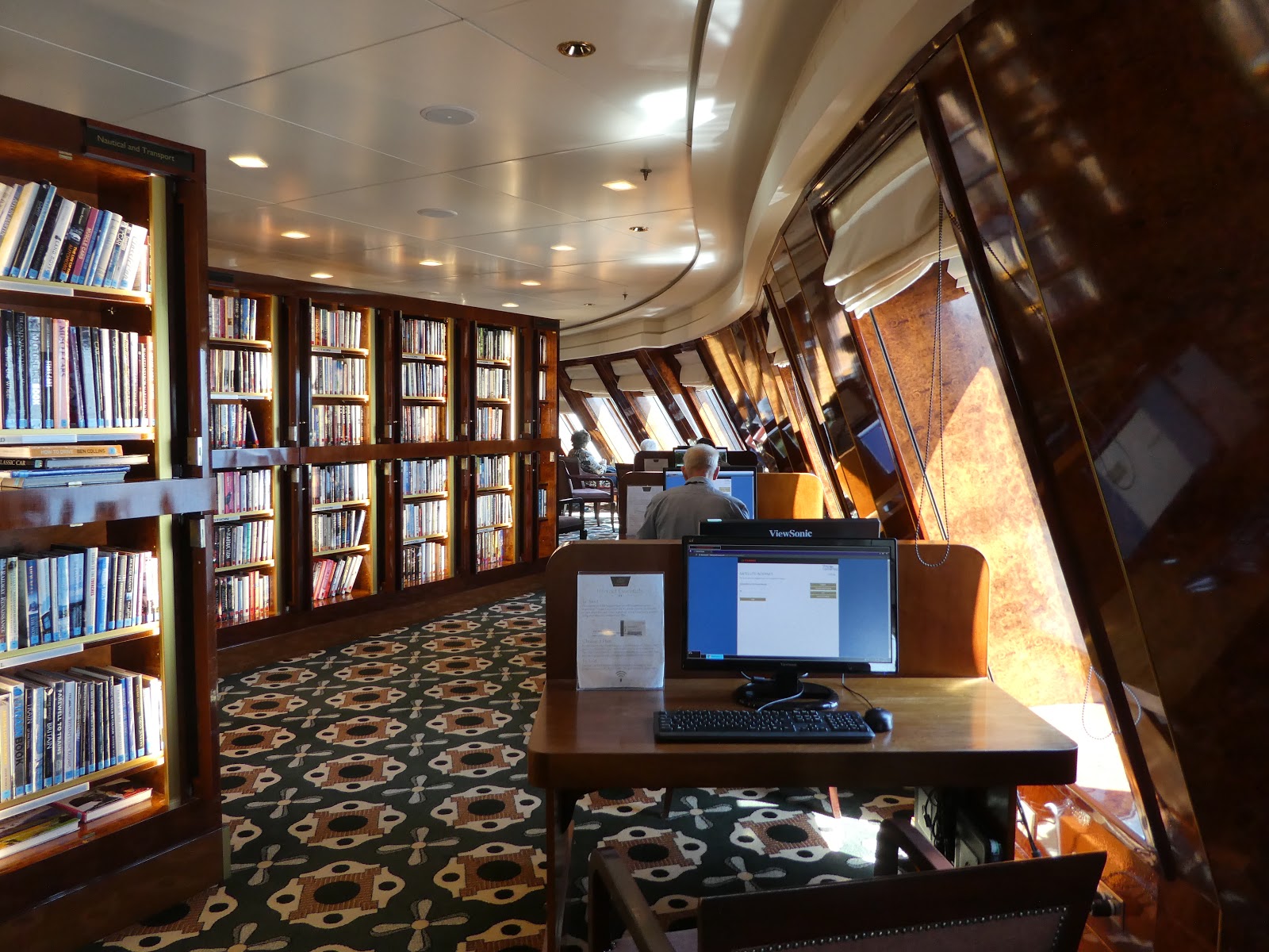 Our week aboard the Queen Mary is nearly over.  What a wonderful time we have had.  The experience for us has been less an adventure at sea, and more a week of leisure in a luxurious resort with great comfort, varied entertainment, great food, interesting people and conversation, beautiful artwork, and pretty much any accommodation you could want.
