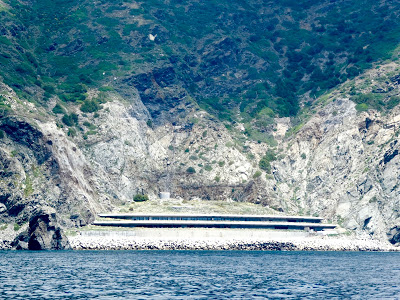 When we arrived this Spring our bright and shiny new boat was quite a site. She was very dirty. As if 7 months open storage exposed to sun, airborne debris, and dust was not enough, the south of France experiences (rather frequently) “dirty rain”. It was explained to us that the rain brings with it sand from the Sahara. In addition, ICE FLOE had been moved to a particularly dusty part of the yard. We had hired out the work of repainting the bottom and replacing the water line stripe with hard paint. This area of the yard also strips off bottom paint and while efforts are made to limit the drift of this paint dust, ICE FLOE got more than her share.