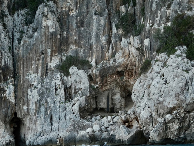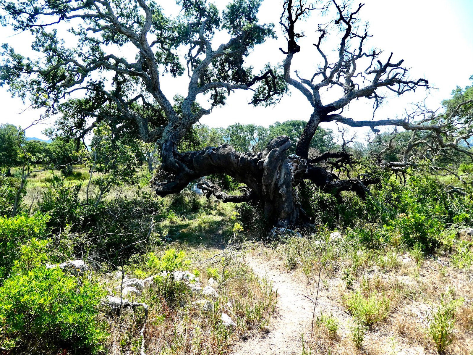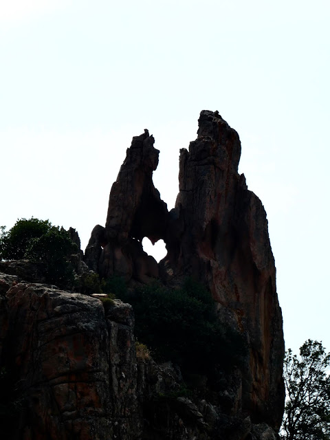 These occasions, when we have the chance to see more of a country than the coast, are often a great opportunity to broaden our knowledge of a region. This walk was no exception. Our first discovery was a Cork Oak tree. Of course, George immediately recognized it and knew quite a bit about cork (doesn’t everyone?). Well now I do, too. First of all, all cork comes from these trees. Corsica has many, many orchards of Cork Oak trees, as well as Cork Oaks in forests and in people’s yards. On this walk, and our subsequent drive through Corsica, we never saw a large Cork Oak that had not had its bark harvested. The cork bark protects the tree in fires.