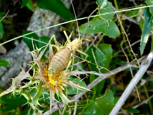 | We got to see this really cool bug. I was less excited when I found one on my shoulder. It is as big as it looks. |