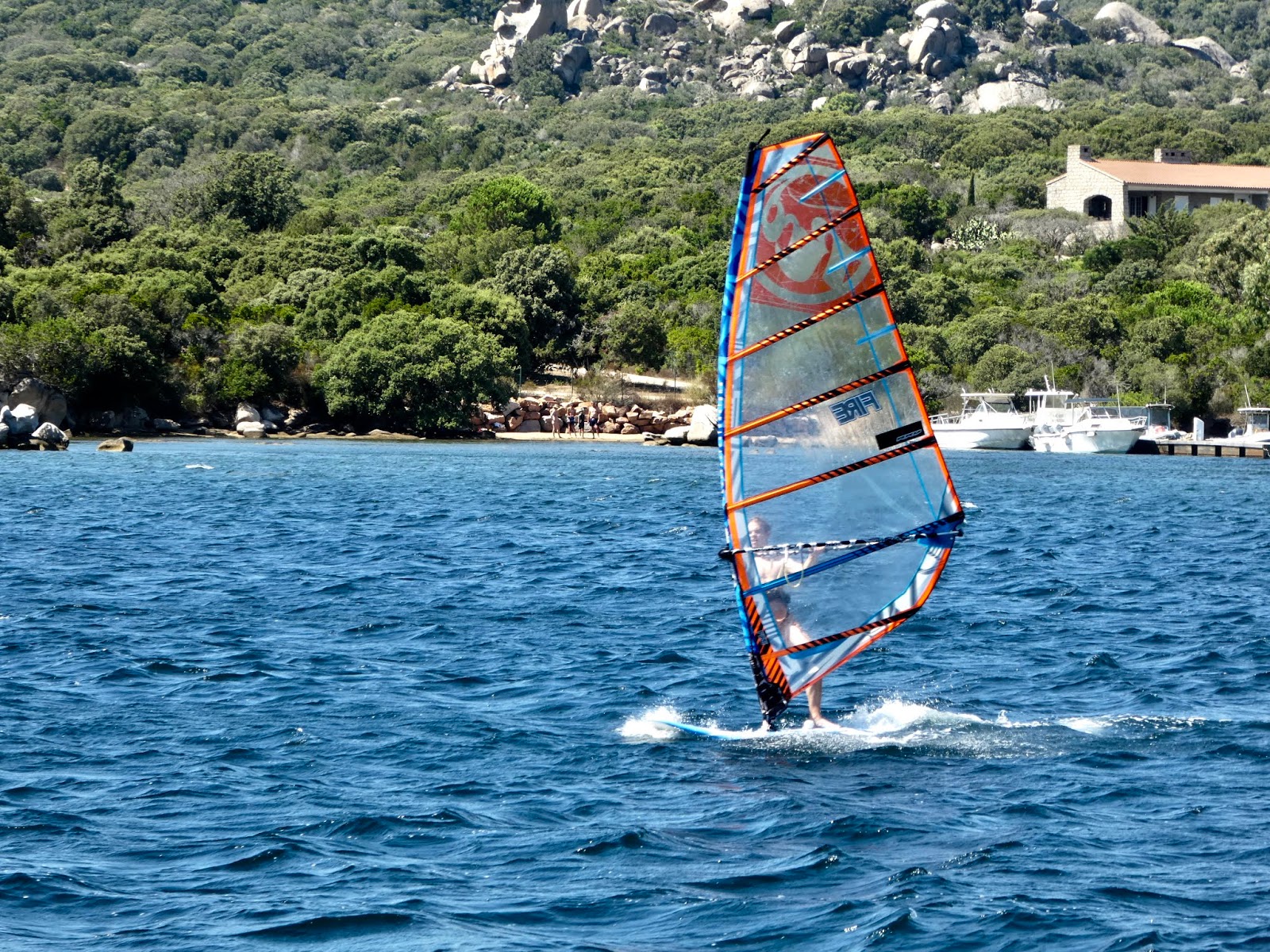 As we approached the Pianotolli-Caldarello marina, we needed to dodge dozens of wind surfers and kite boarders that were zigging and zagging across the marina entrance.