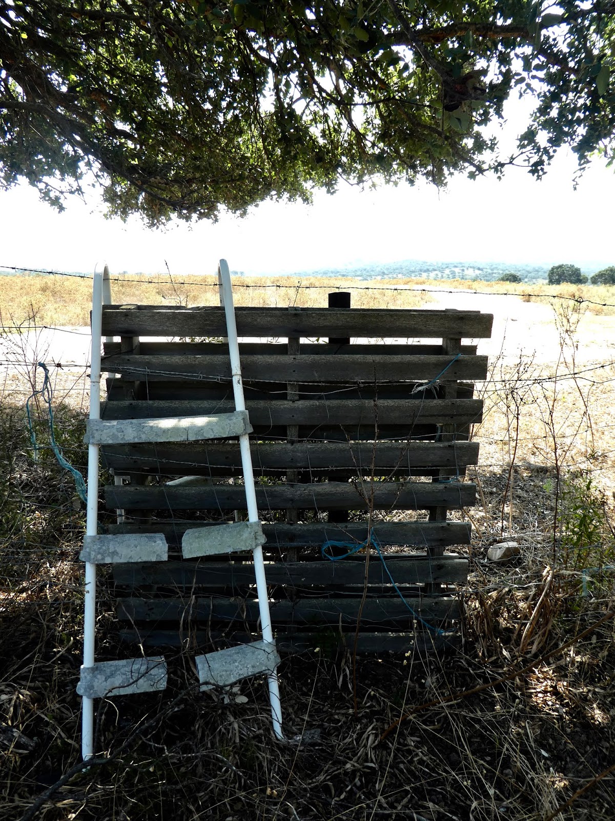 | Not every barbed wire fence came with a broken ladder. |