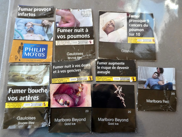 | These are the entire front cover of each cigarette pack. There are no other graphics – no advertisements – no logos. There are lots more variations, but these are a good representation. |