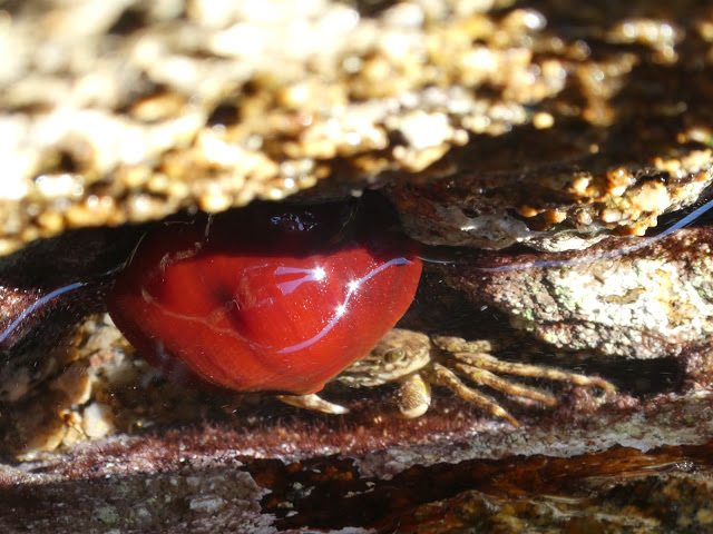 | A crab and a beautiful critter we have seen on rocks close to the surface – Anse de Cacalu |