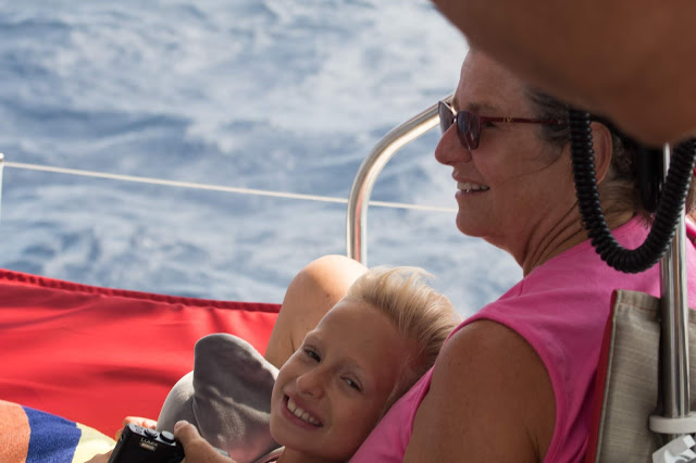 George hung a line from the mast so the kids could swing (when we were not under sail).