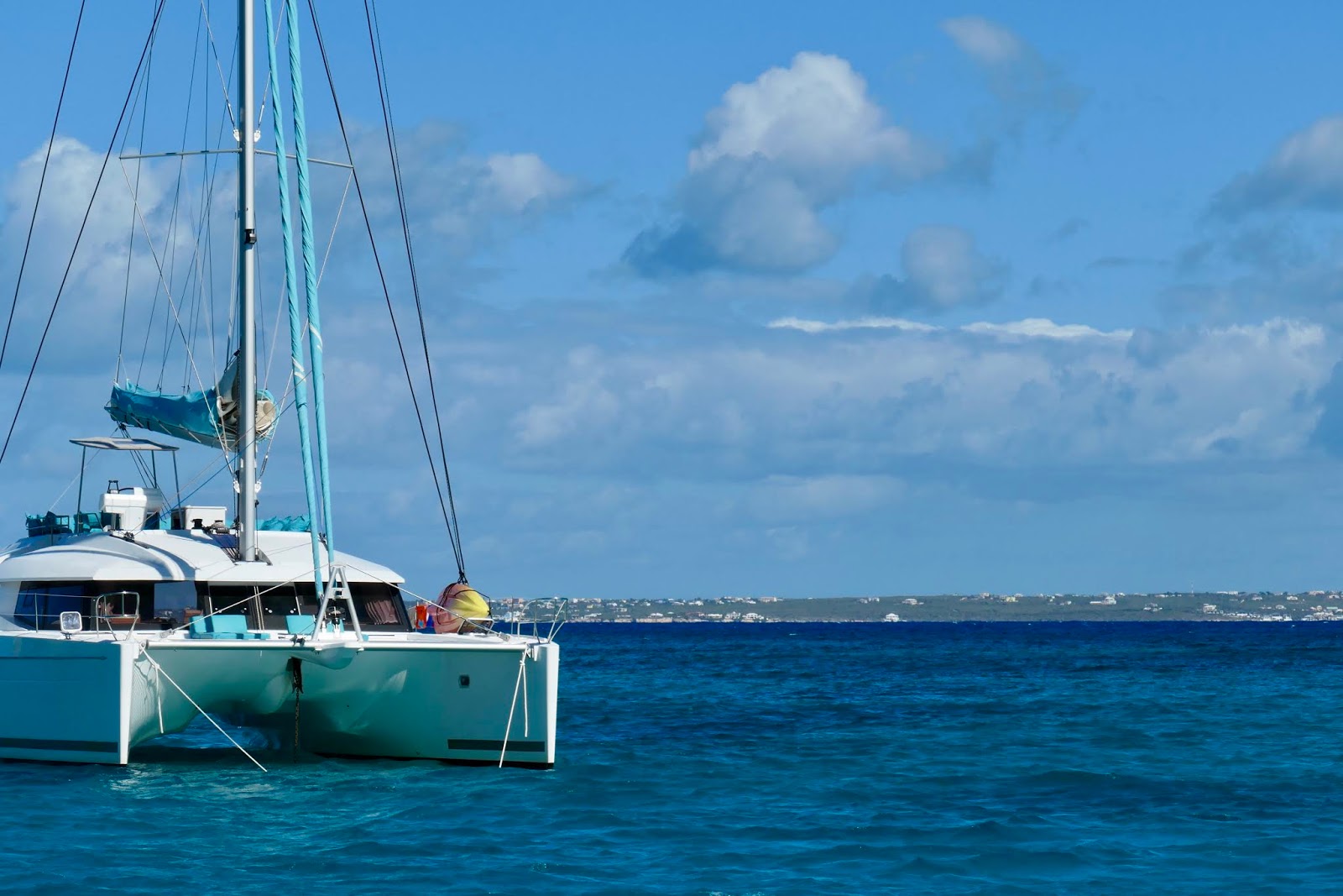 Off our stern, we see the heavily populated British territory, Anguilla, and a really smart-looking catamaran. This 60ft cat is chartered and crewed.