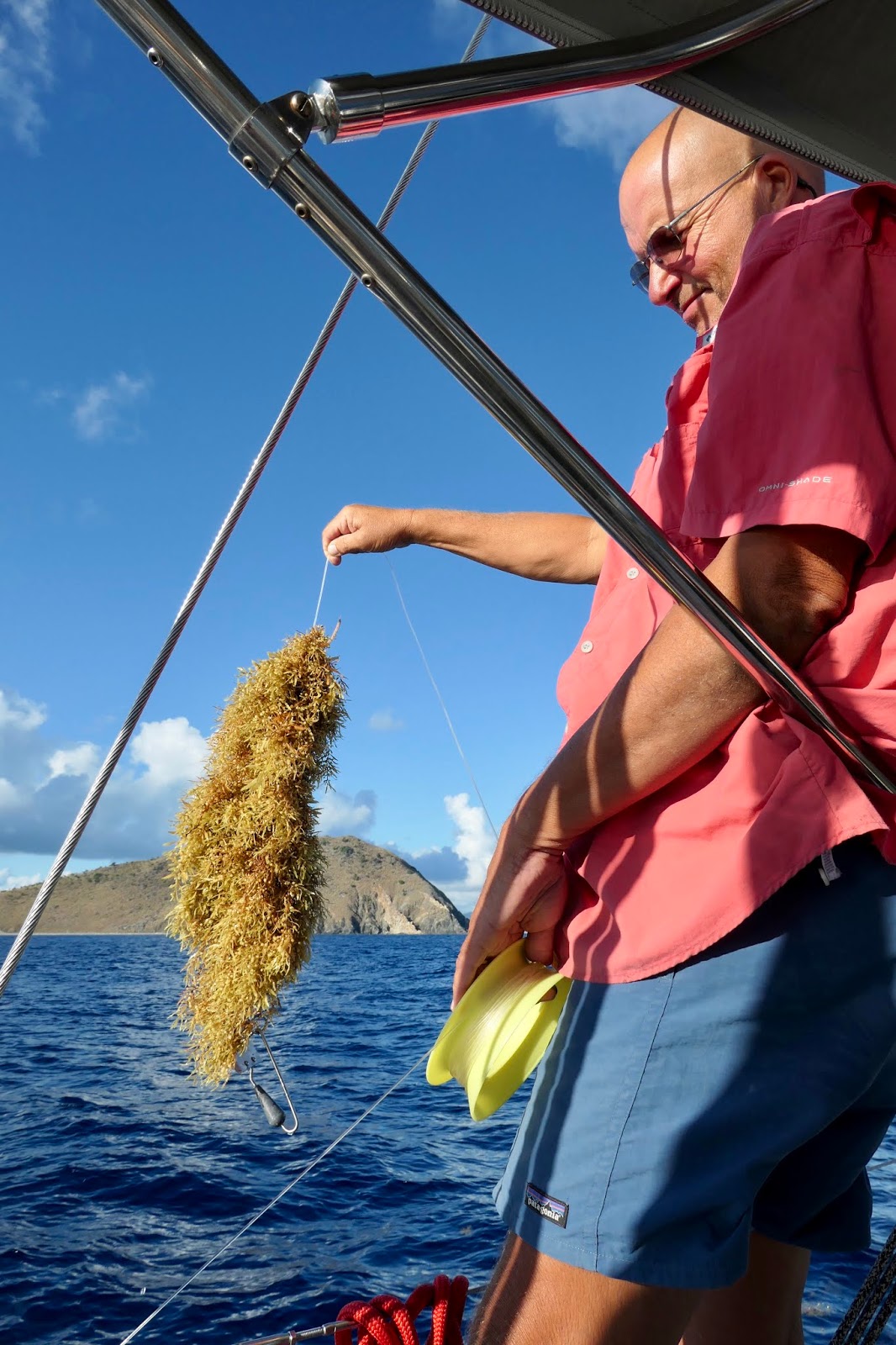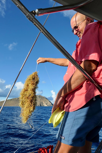 Fishing remains a challenge due to the sargassum seaweed that catches on the line and hooks. After less than a half hour in the water our planer popped to the surface with a load of weed it could no longer bear. We ran a couple of lines right behind the boat that tend to be clear of the weed for a few hours and then called it quits. You can’t catch a fish if you aren’t fishing, but I can’t find any recipes for sargassum.