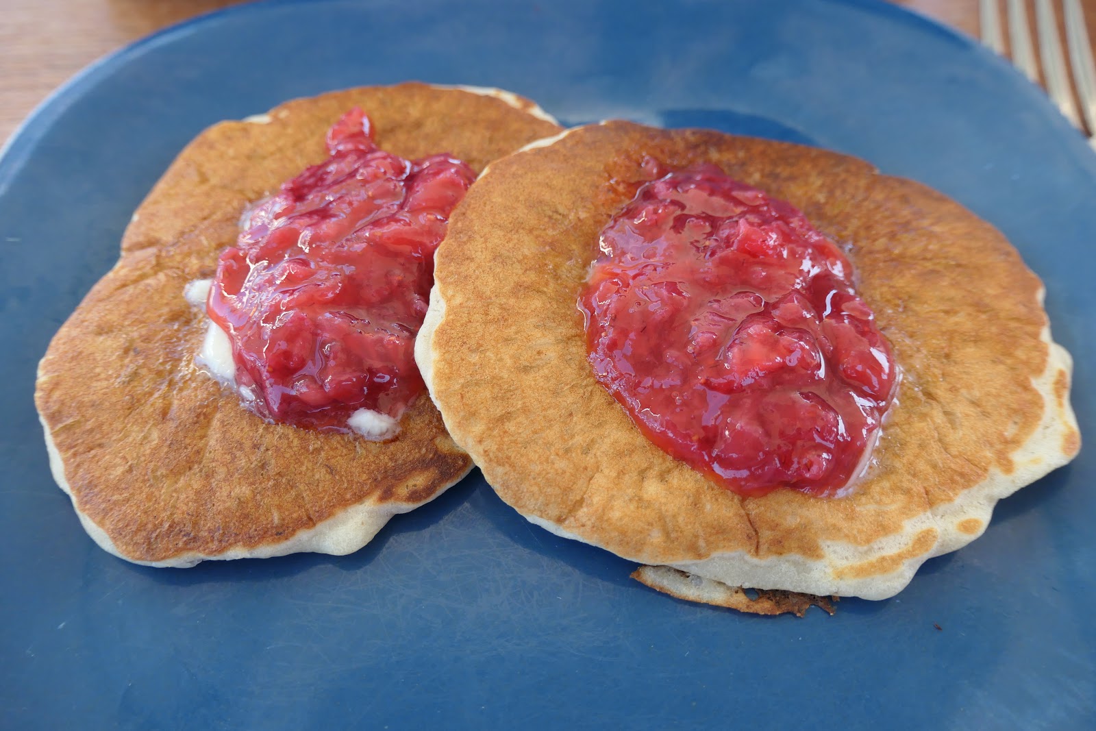 | Pancakes made with Mitch’s awesome sourdough. He grew it from thin air in Flagstaff and we can revive it after it has been dried for travel. |