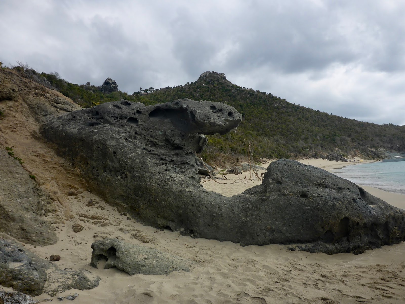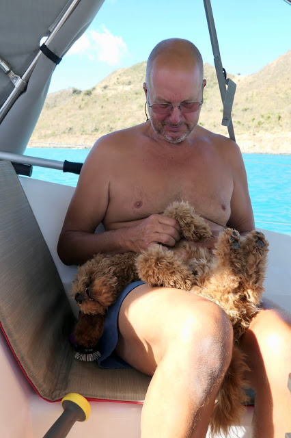 We anchored off St. Martin in Anse Marcel, with a view of incredibly turquoise waters and the Riu Palace Resort. We are not cleared to visit St. Martin. Although we are on the French side of the island, the pet restrictions follow those imposed by the Dutch side, and Duhkxy will not meet those until next year. The VHF wafts French and we are lusting after pain au raisons and croissants but we must be patient. We are having pancakes with freshly made strawberry jam. George is prettying up Duhkxy and checking (on-line) into St Barthélemy (aka St. Barts), and then we will be off.