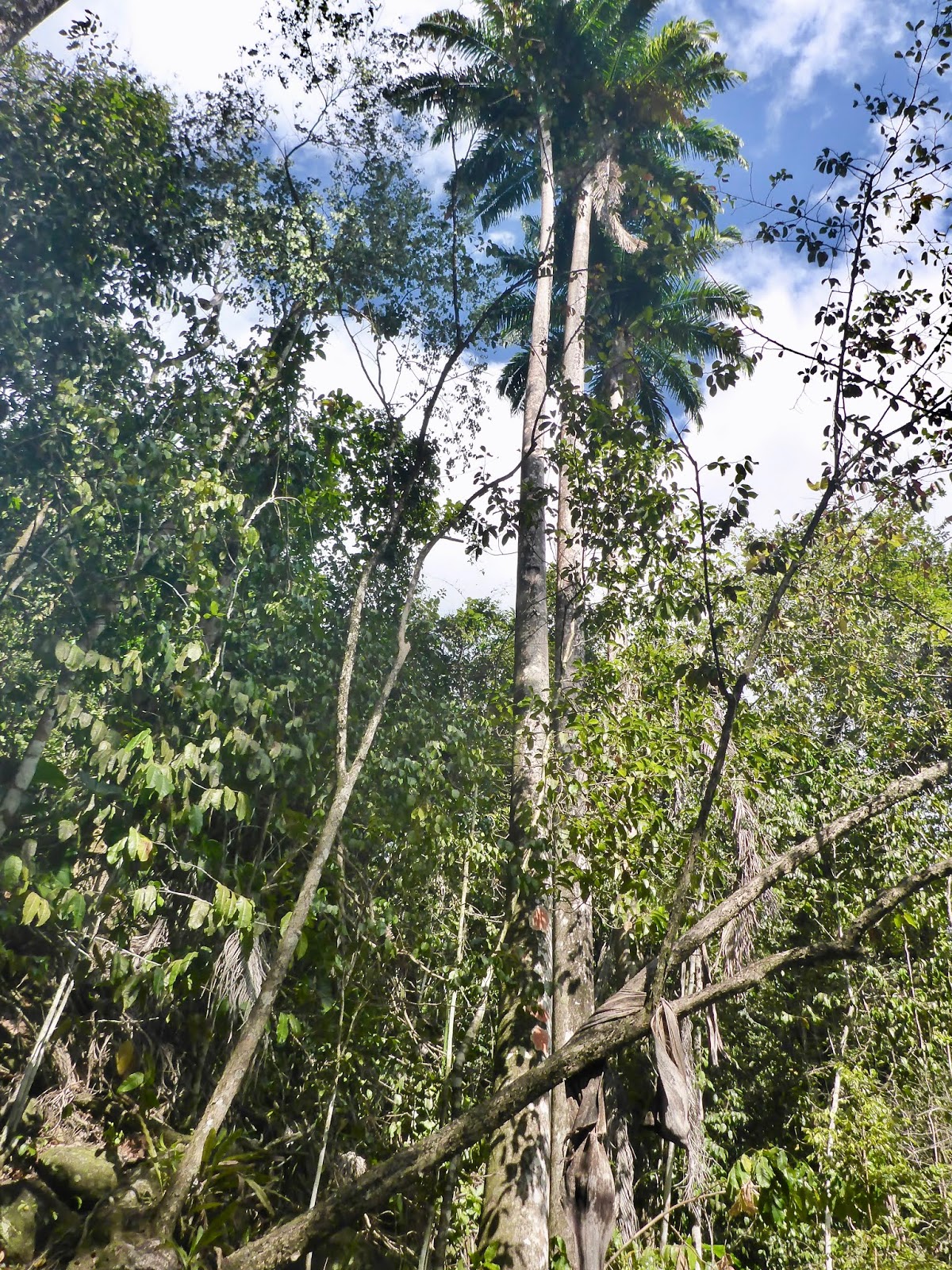 We were surprised to see palm trees growing in this dense forest – having associated them in our minds as the lovely trees lining beautiful salt water beaches.