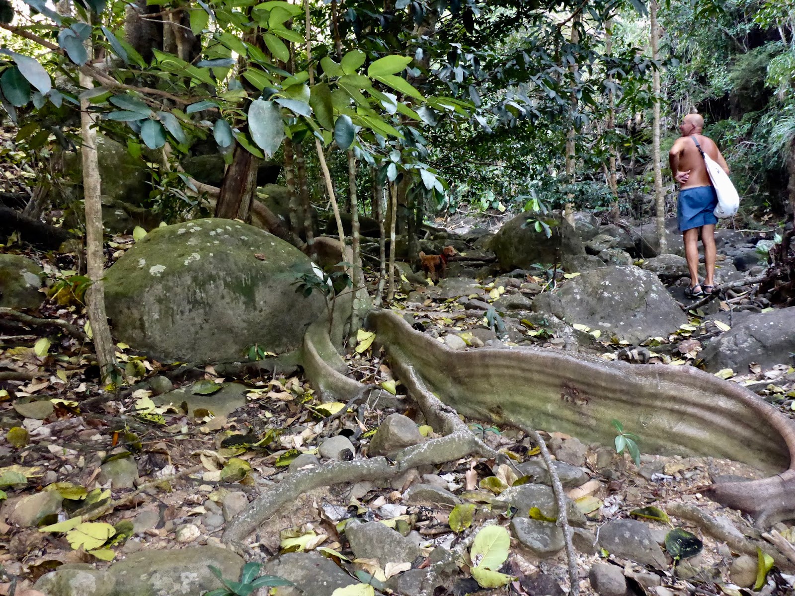 This fun story cannot end without my sharing information we found on this trail (after we survived it). Accounts from a number of sailing bloggers indicate that, indeed, there is a road and a lovely waterfall at the end of the trail. I think Duhkxy was just slowing us down.