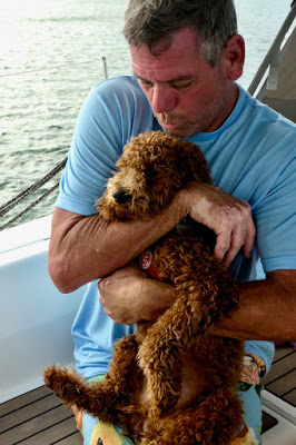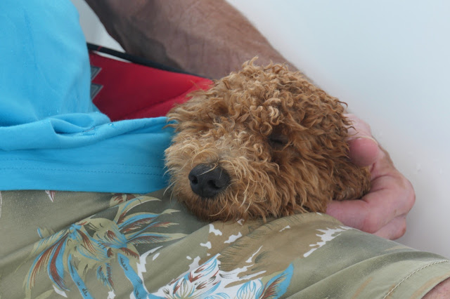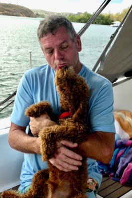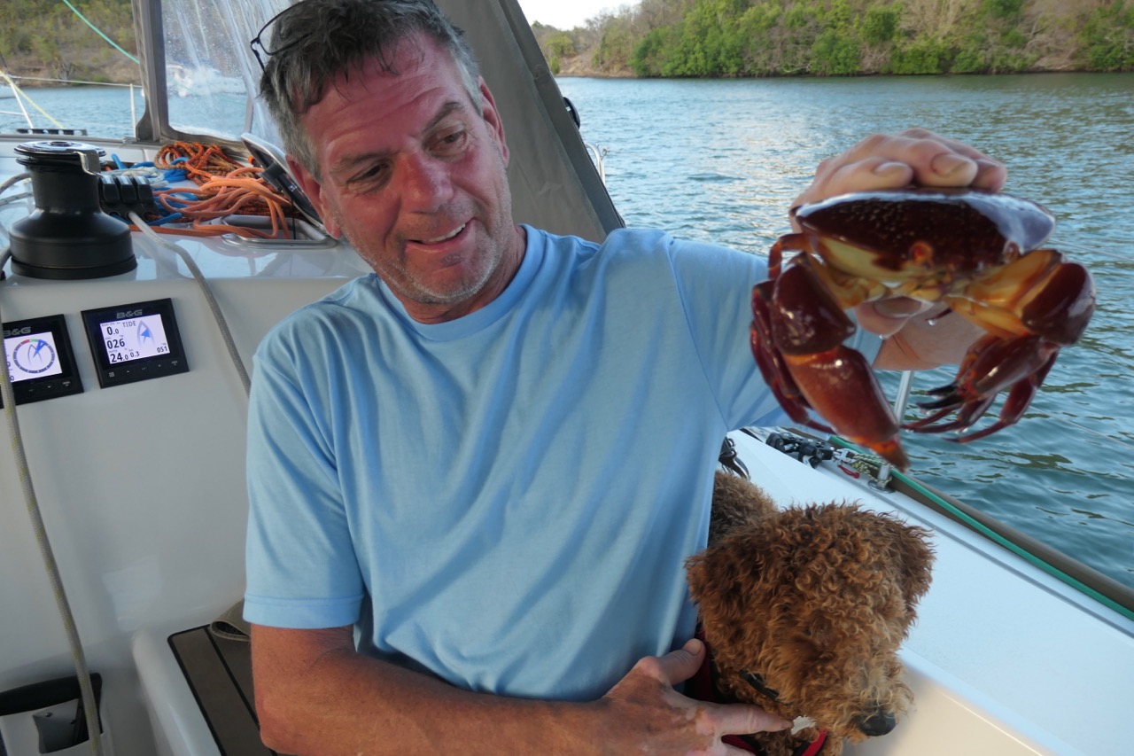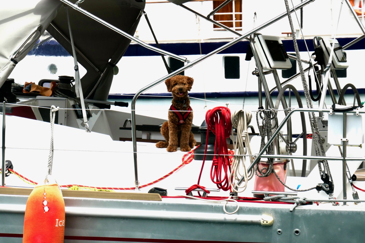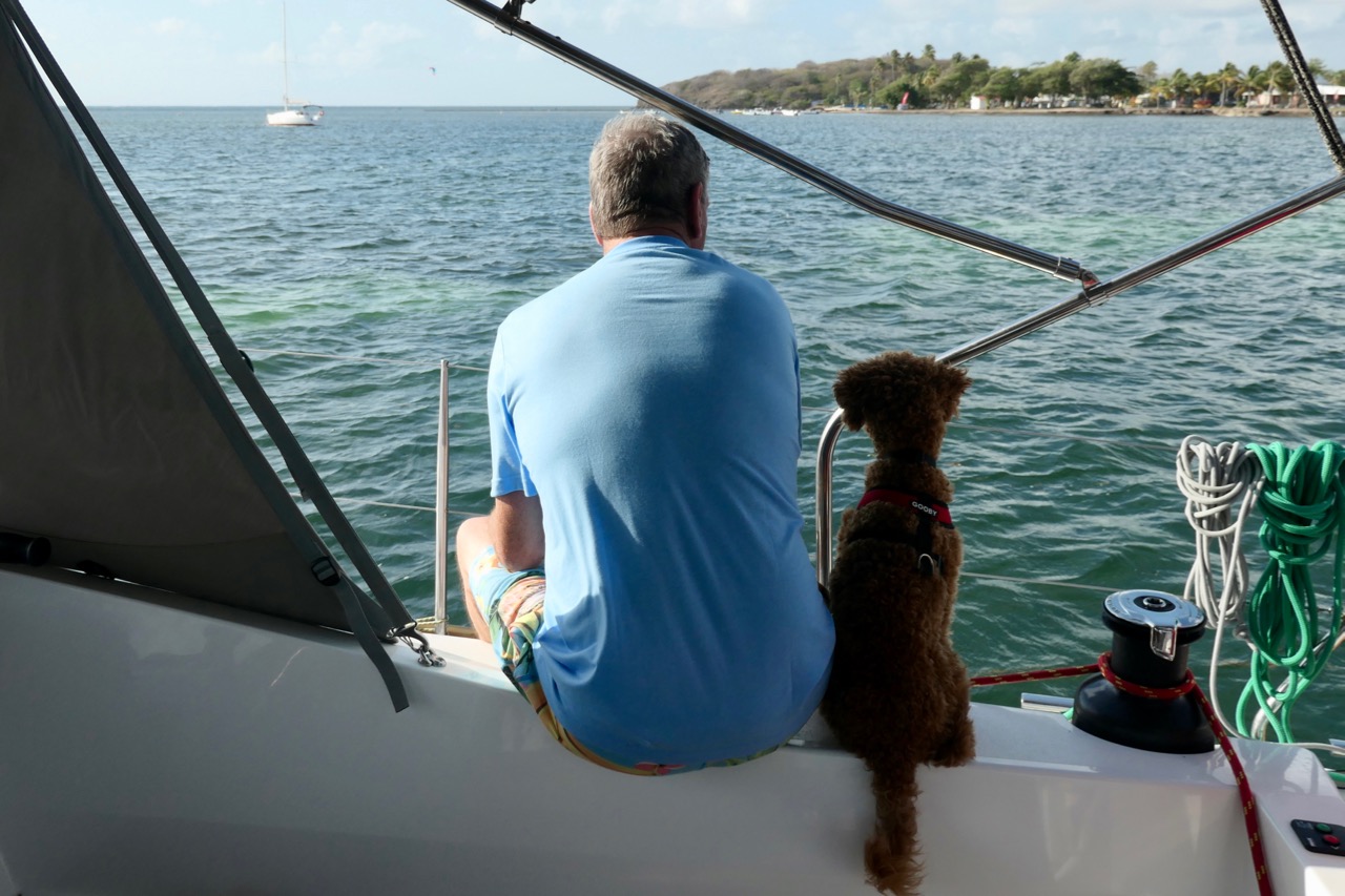 Unfortunately, our application for Duhkxy to visit St. Lucia had not yet been approved so he could not leave the boat. We took this opportunity to further our efforts to make Duhkxy at ease when we had to leave him alone. Duhkxy made great strides in adjusting to our absence, remaining mostly calm, and assuming a lookout for us on the cockpit combing until our return.