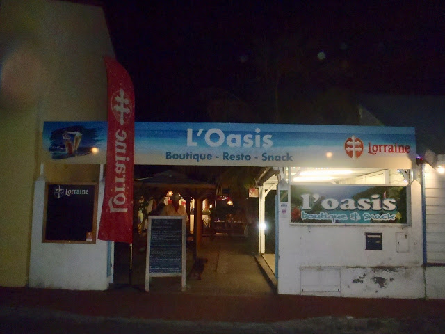 As you begin to enter Marigot Bay Marina, this duo of pale blue and white buildings house the administrative offices, marina showers, the Hurricane Hole restaurant, a bank, and some living quarters. The two buildings are separated by a large courtyard with seating for the restaurant. On our first evening in the marina, George and I had dinner at the Hurricane Hole that was offering a buffet of traditional Caribbean dishes and a show featuring a very talented tenor saxophone player alternating with performances of a traditional dance troupe featuring fire, fire swallowing, and fire breathing.
