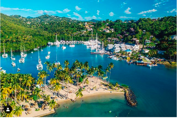 | Aerial view of Marigot Bay Marina and Resort reproduced from the resort’s website |