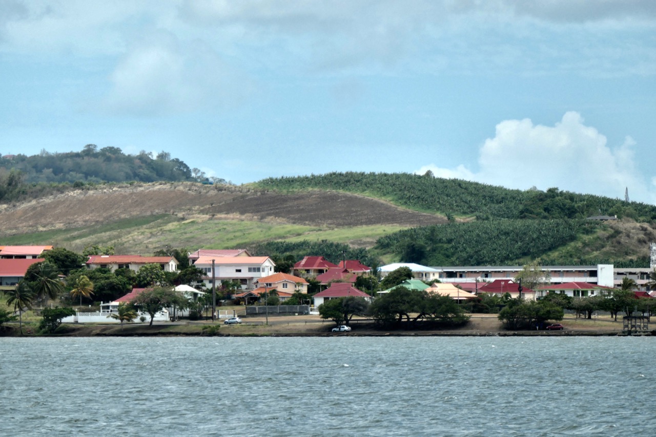 I took a 45 minute cab ride to the Hewanorra Airport to meet Michael – another great opportunity to see more of the island during this ride from the northwest side of St. Lucia to the southeast. We passed through banana plantations, across mountains and through the island’s rainforest. Our driver Moses was kind enough to stop at an overlook of a beautiful fishing village and at one of the many fruit and vegetable stands so I could replenish our stores. The homes and villages we saw were colorful and well maintained. We will certainly visit again for a longer time once Duhkxy’s permit is approved (spoiler alert: it was ultimately not approved this year as Duhkxy was not old enough to have some of the required tests done).