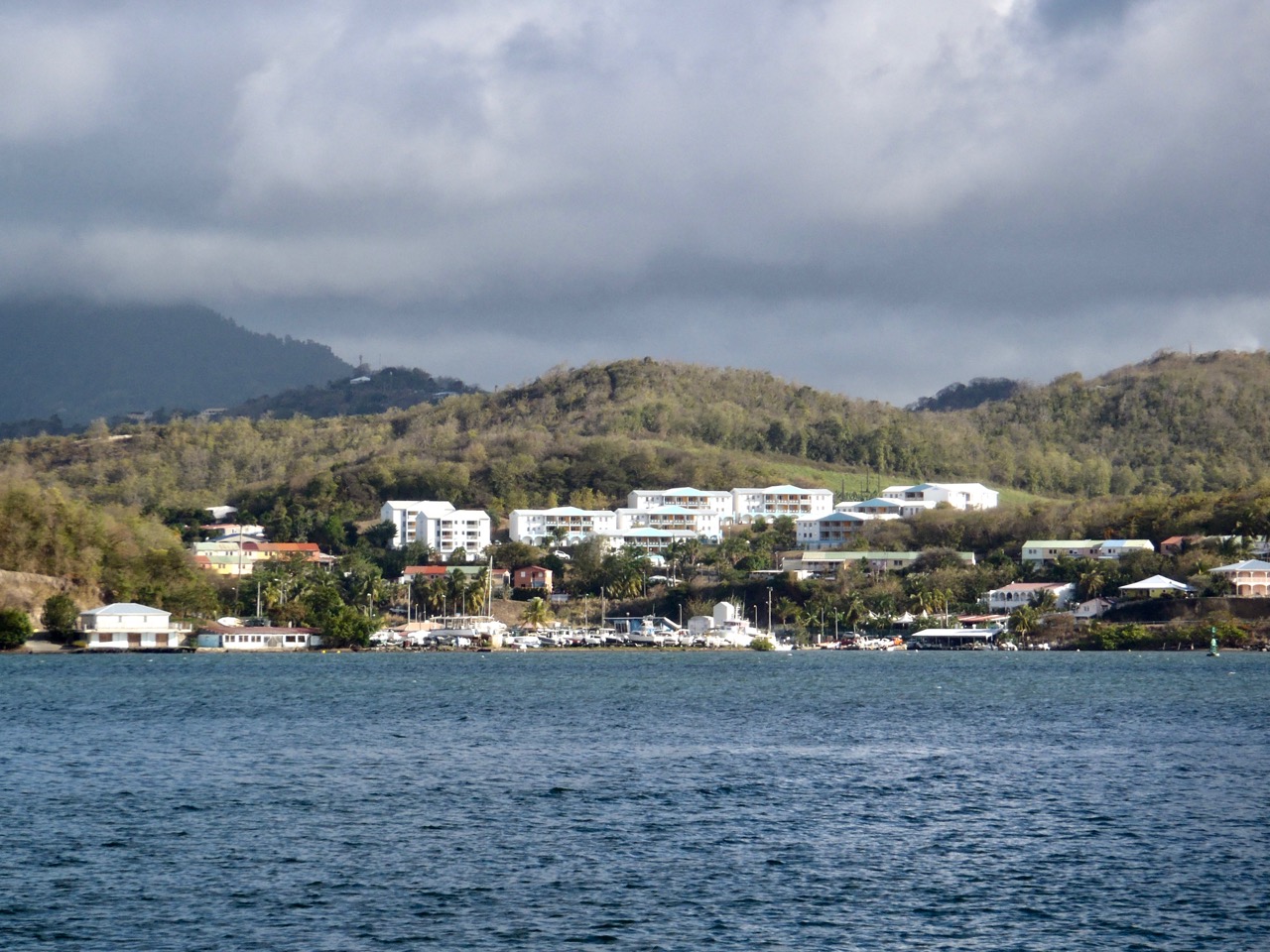 We arrived to Marigot Bay in St. Lucia early in the afternoon. As you enter the bay, the hilltops are festooned with colorful villas/homes/rentals.