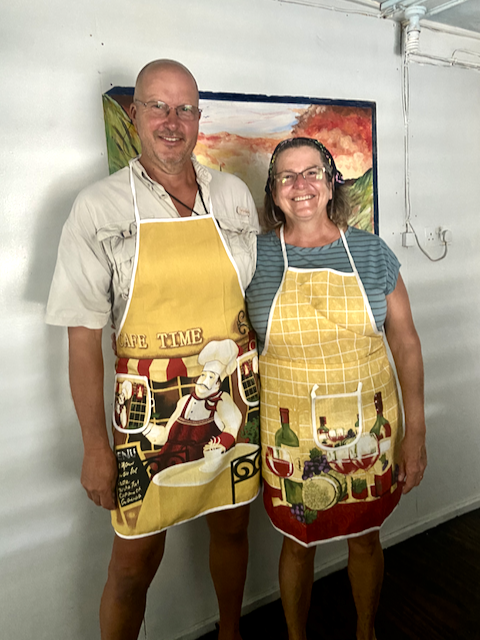 The preparation space was limited and we could only imagine what a challenge this would be when the restaurant was full.  Sandra and Lisa laughed and admitted it could get pretty chaotic.  They have two huge, many burner, stoves, but each dish we prepared was cooked in one pot.  This type of cooking is ideally suited to cooking on an average-sized sailing vessel.