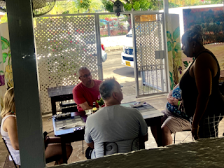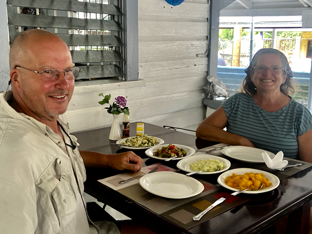We greatly enjoyed our time at Patrick’s having a wonderful dinner, taking cooking lessons, and meeting Milton, Karen, Sandra, and Lisa.  There will be a much greater variety of traditional Caribbean vegetables, prepared efficiently in our tiny boat kitchen, going forward.