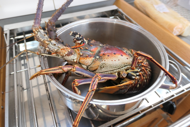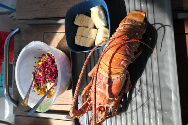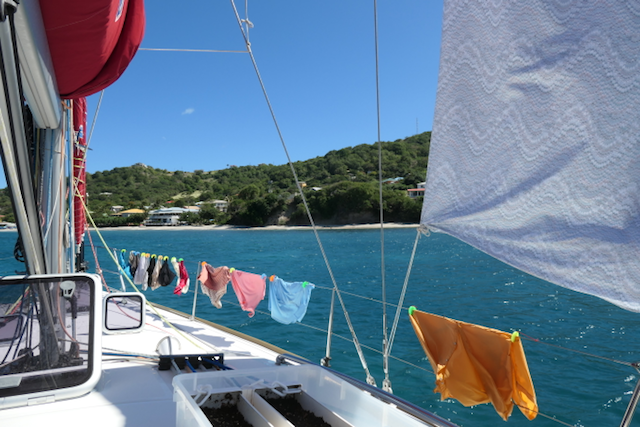 We are currently anchored off a pretty fishing village on Petite Martinique.  George just finished the laundry and I just finished the dishes from our decadent lunch of lobster and salad.