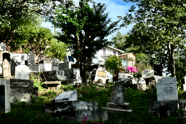 Graveyards in Petite Martinique, as well as other nearby islands we have visited, are small, informal, and interspersed with other private properties.