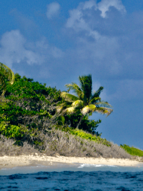 We celebrated the coming of the New Year anchored off Sandy Island, a small uninhabited island with extraordinary beauty.  This island is east of Carriacou, one of the several islands that are part of Grenada.  Some time ago, vegetation on Sandy Island was killed by seawater.  Were it not for a hurricane (uncommon in Grenada) that threw coral up on the sand strip, the island would likely have vanished.  Locals planted trees and undergrowth that, in combination with the more substantial coral base, stabilized this idyllic island surrounded by healthy coral reefs.