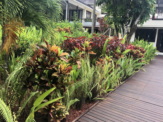 Day 2 was slated for R&R out of respect for the preceding, arduous, day of travel. We spent much of the day swimming, planning, and strolling through the resort. The winding paths are bordered by well-maintained flowering shrubs, water features, and trees including mango, starfruit, coconuts.