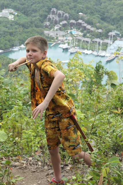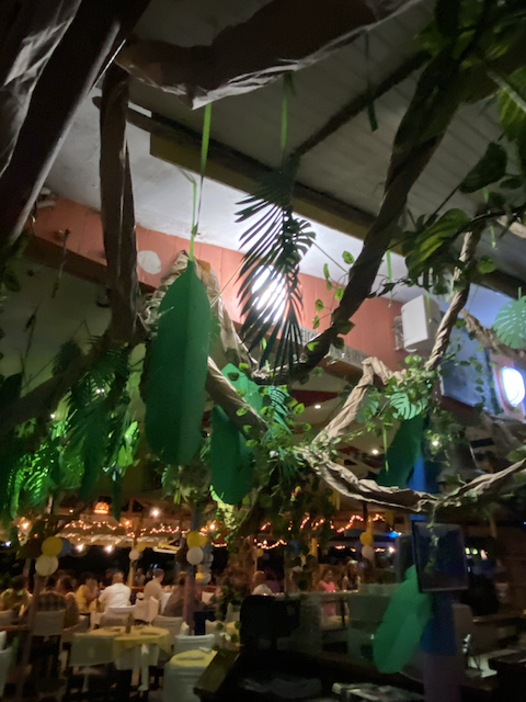 We had dinner back on the resort side of the ferry at Chateau Mygo. Adults may have overindulged in rum punch, that in this establishment, certainly comes with a punch (they have a really nice passion fruit daiquiri, too).