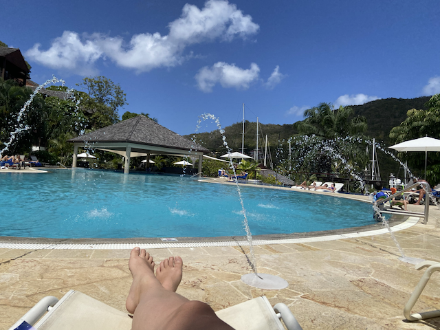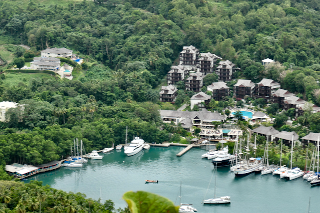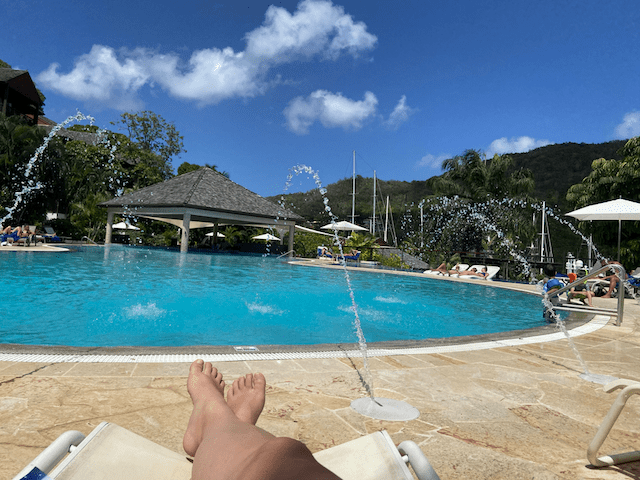 Sadly, their flight was delayed and the pool was closed by the time we got to our temporary home at Marigot Bay Resort and Marina.