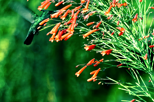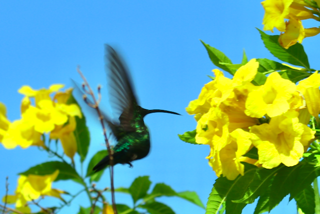 | Mike captured this amazing photo of the beautiful Green Throated Carib Hummingbird (Eulampis holoseiceus) |