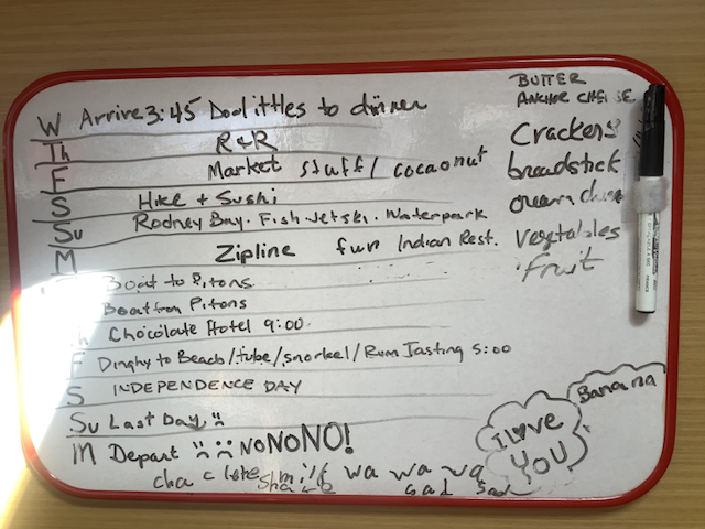 | Allison, Mike, Riley and Tristan had plans!! We sketched out this itinerary to make sure we got to all of them. |