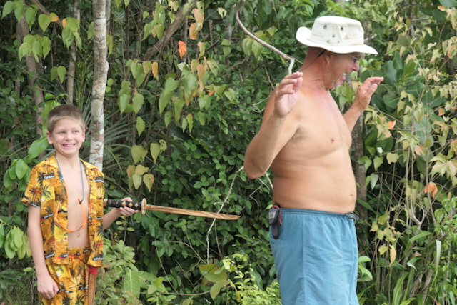 Tristan did some shopping at the market and got both the snazzy outfit he is wearing below AND a sword. Don’t know what his Mom and Dad were thinking.