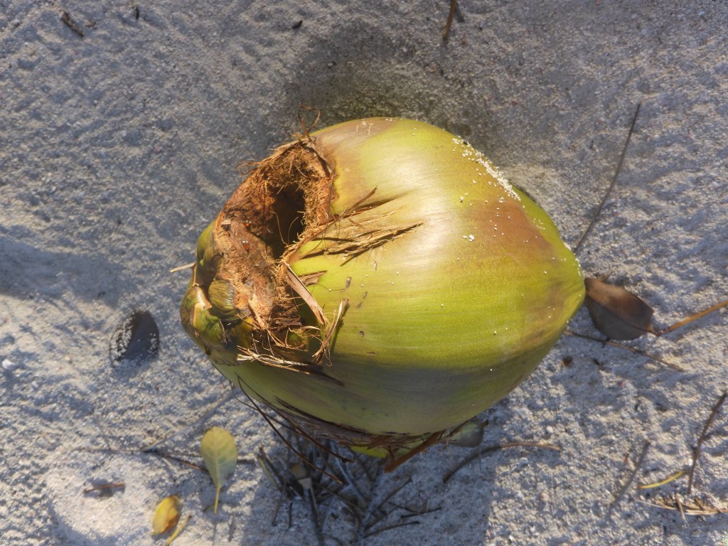 This concludes our chapter of Living in the Moment – “Mystery of the Lack of Mature Coconuts on Sandy Island” – SOLVED.
