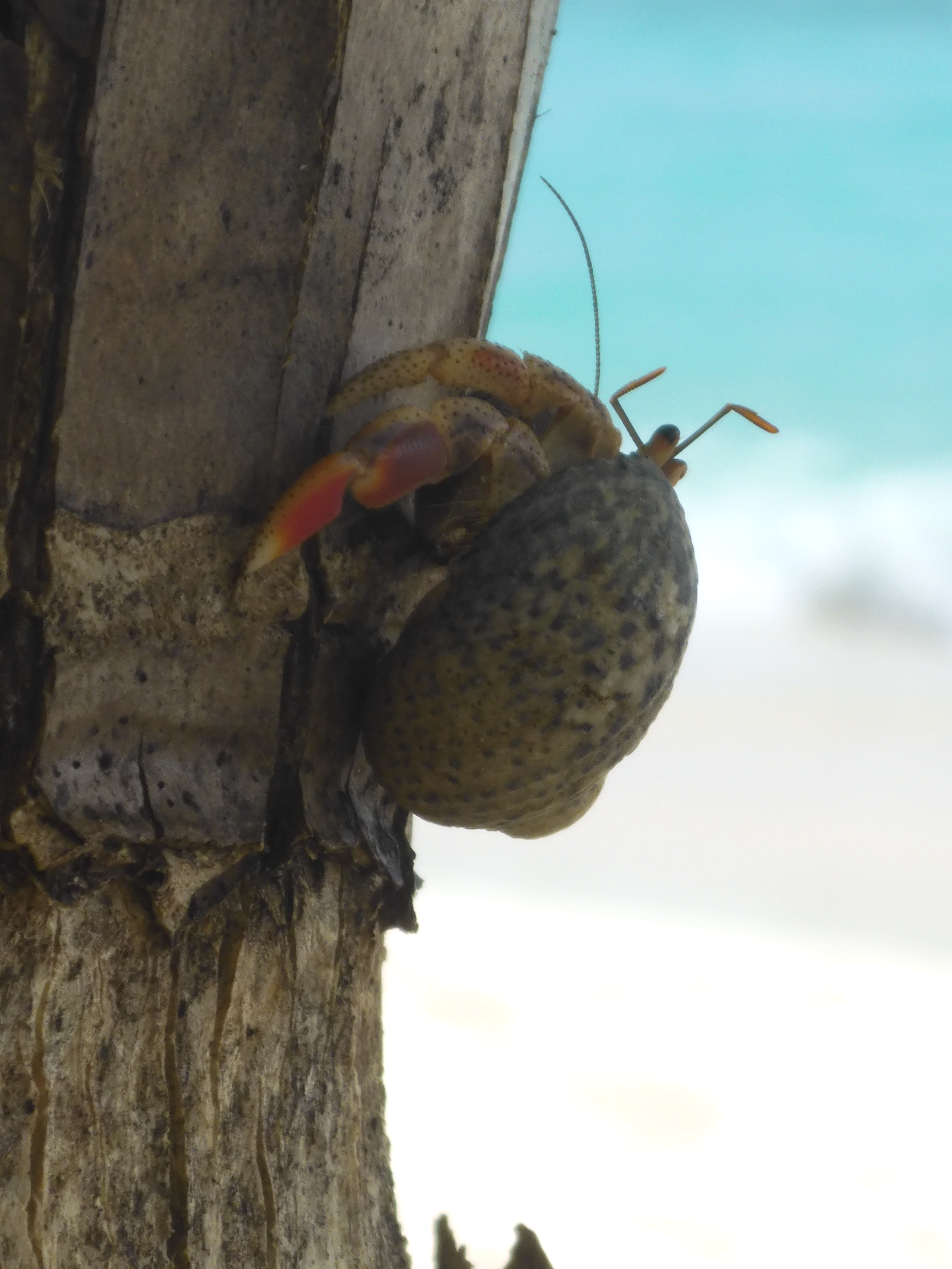 Hermit crab climbing coconut tree
