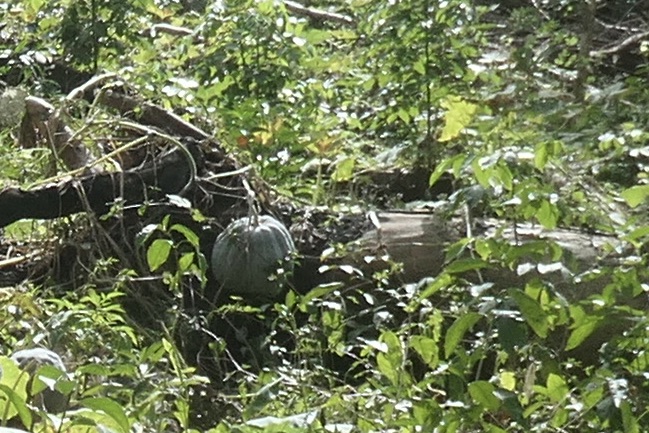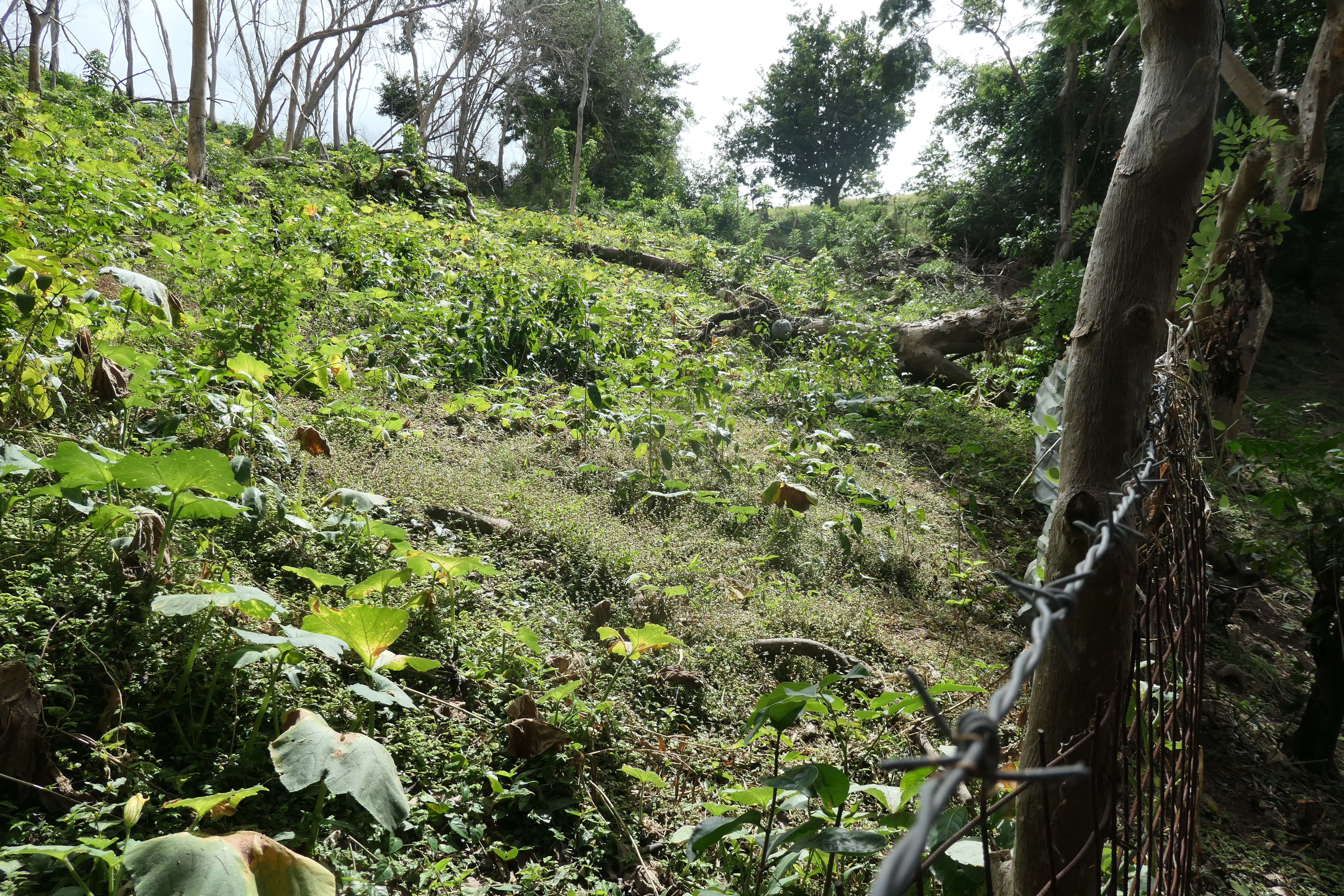 Pumpkins (or very large squashes) are a staple in the Caribbean diet. There are many varieties. Patches are often, like this one, rambling vines on a hillside requiring little maintainance. They are delicious!!
