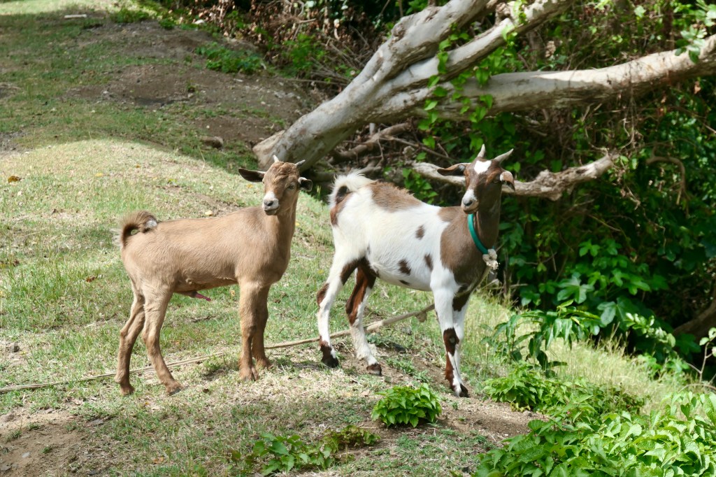 The trail shown above is the one we created in wikiloc from our first Sunday hike. We actually started and ended at the red point with a black square (we forgot to activate the app until we reached the green triangle point). Starting at the Red Point (Paradise Beach Club) we turned left on the road to Hillsboro. This road is fairly busy and certainly not a highlight of this loop trail. It is almost flat and passes quickly. At the blue dot, we turned on to a quiet road for a short distance until we reached the intersection, Six Roads. From Six Roads the trail becomes a dirt road where we encountered roaming goats, new vegetation, trees with giant oval calabash-like fruit a very large immature soursop orchard, a hillside covered in Caribbean pumpkin patch, a beautiful bird we had not seen before, and the shell of a large turtle. We often observe new wildlife on our walks and do our best to identify them when back on the boat.