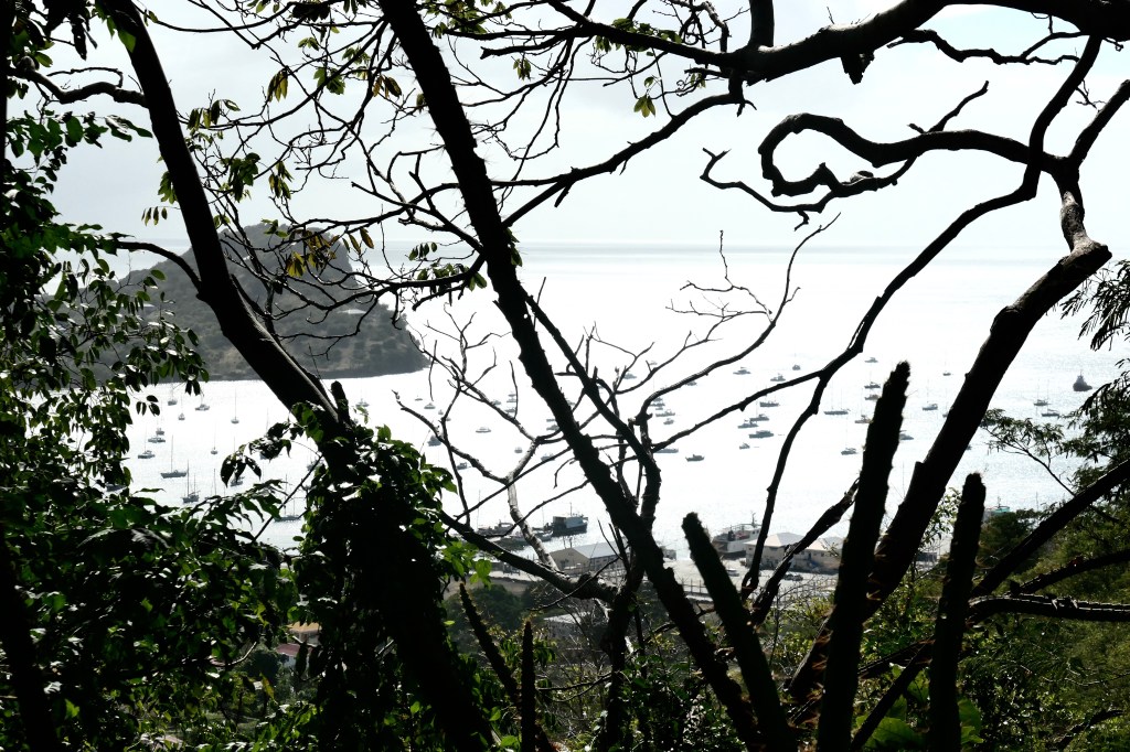 The hike continues west along the backside of the hill, views of the southern side of Carriacou Island overlooking Tyrell Bay emerge.