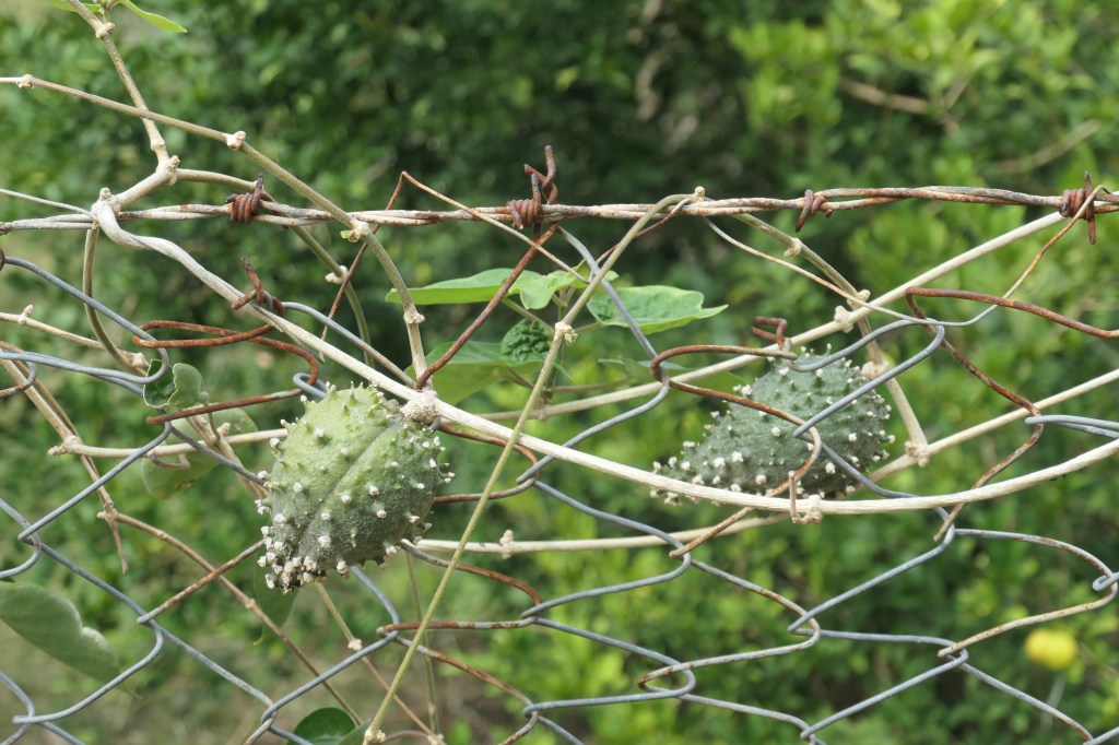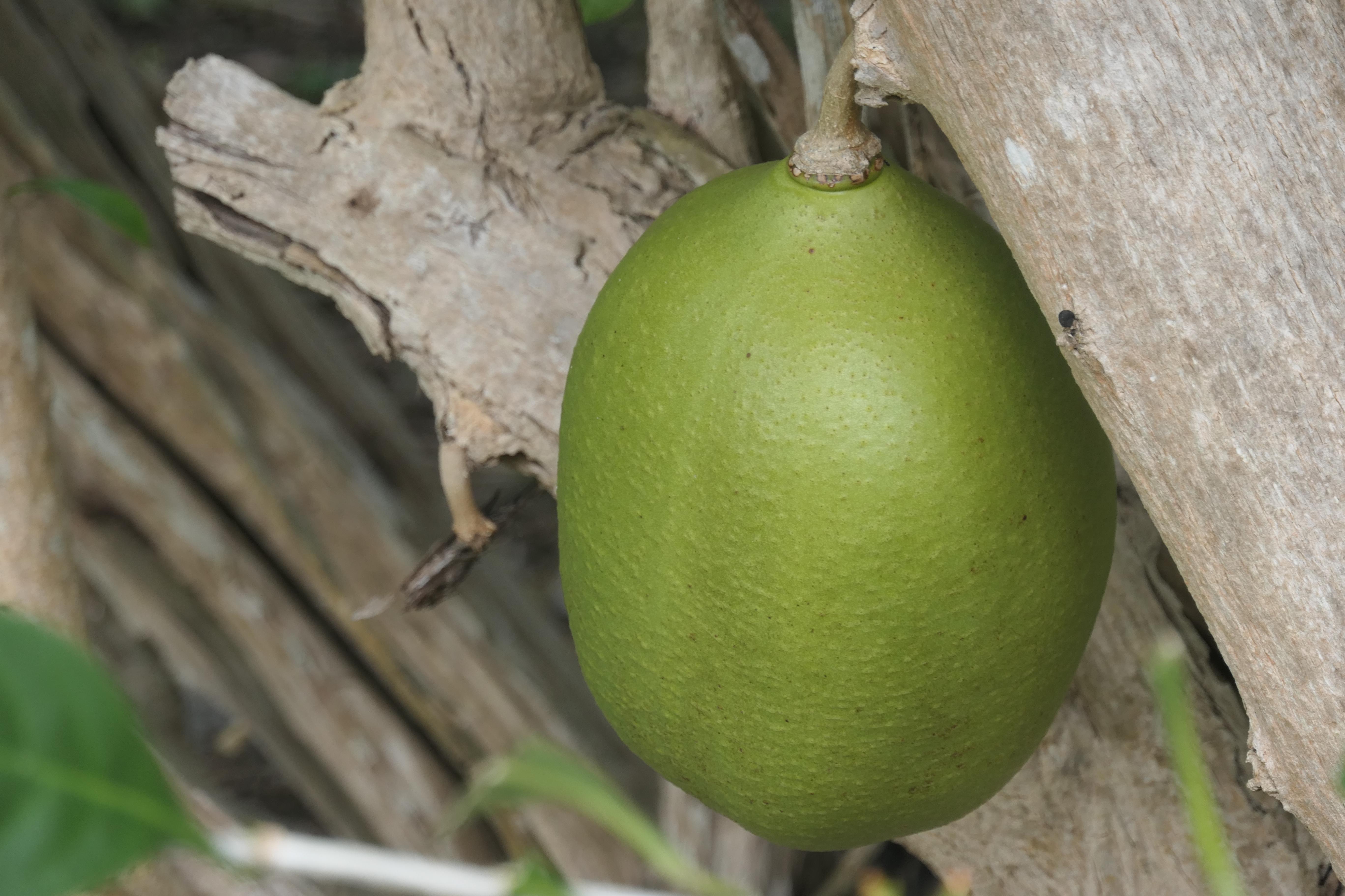 These large oval or round “fruits” grow from the trunks or larger stems of Calabash trees. When they dry, they are brown and hollow and often used to make pretty bowls.