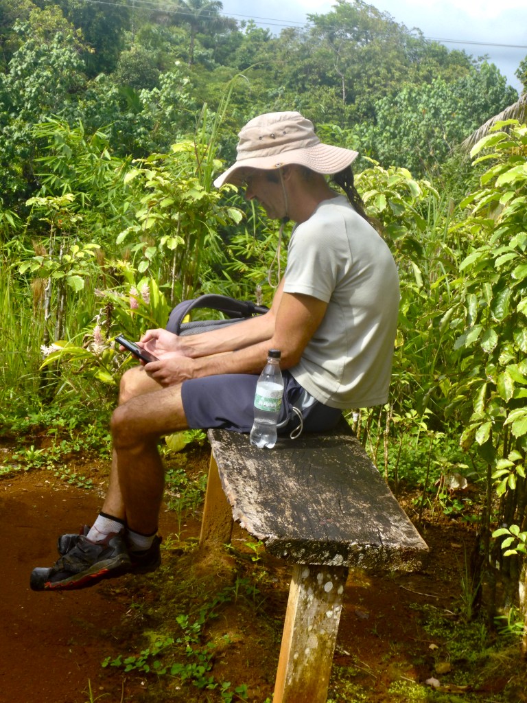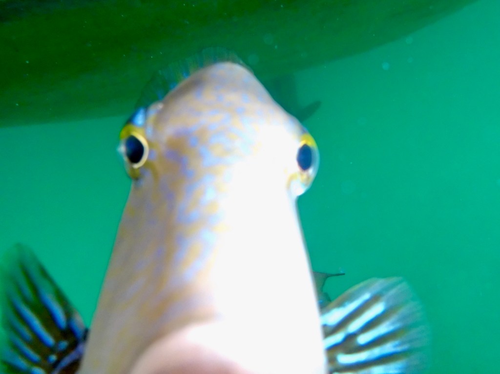 The sails between these bays are short hops and sometimes we make a day of it by sailing way out into the 1000+ feet deep water while fishing. Other than quite a few barracuda earlier in our stay, I haven’t been enjoying much luck. I never get completely discourage; One of my frequent statements is “You can’t catch a fish if you are not fishing”.