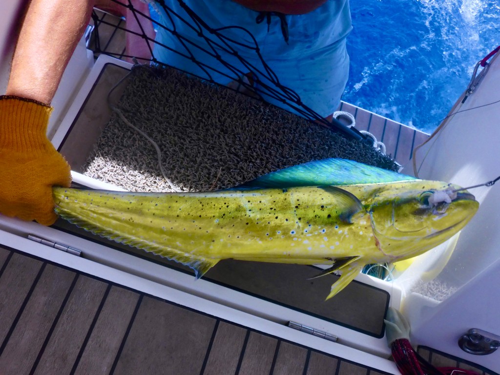 Fishing has been a challenge recently as the sargassum is getting prevalent. On our trip from St.David’s to Prickly Bay we sailed way out and spent a great deal,of time pulling in lines that had snagged huge burdens of weed. With the boat sailing at 7 knots and rolling over 6 foot waves, it is hard work to bring the lines in. I persevered and was rewarded.