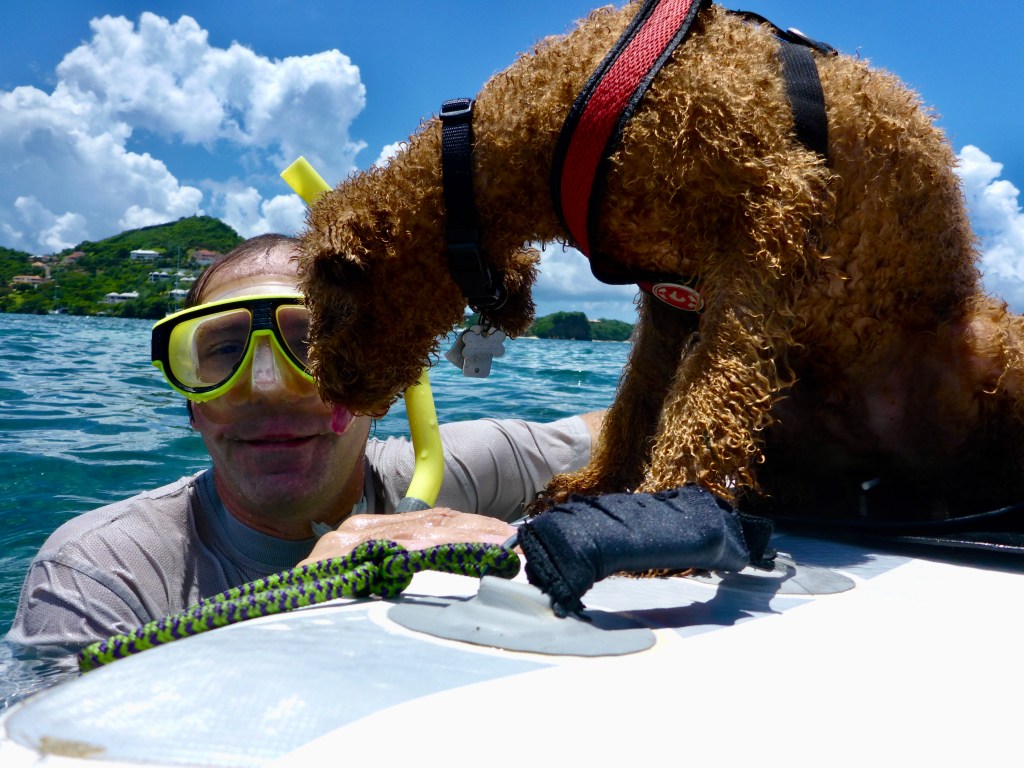 We recently booked flights home May 7th. While counting the days until we can see our loved ones again, we are packing in as much fun as possible. We recently sailed from Carriacou to Grenada and have been bay-hopping between St. David’s, Prickly Bay, Woburn Bay (aka Clark’s Ct. Bay), and now Port Louis. Each bay/marina is distinctly different and, in each, it was fun reconnecting with friends who were likewise moving from time to time.