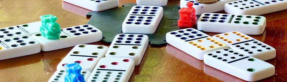 One of the best consequences of living here for more than a year has been our growing friendship with a French Canadian couple, Sophie and Richard. They introduced us to Train Dominoes and we play with them and many other devotees as much as possible. It combines the elements of chance and skill such that even a novice may sometimes do well.