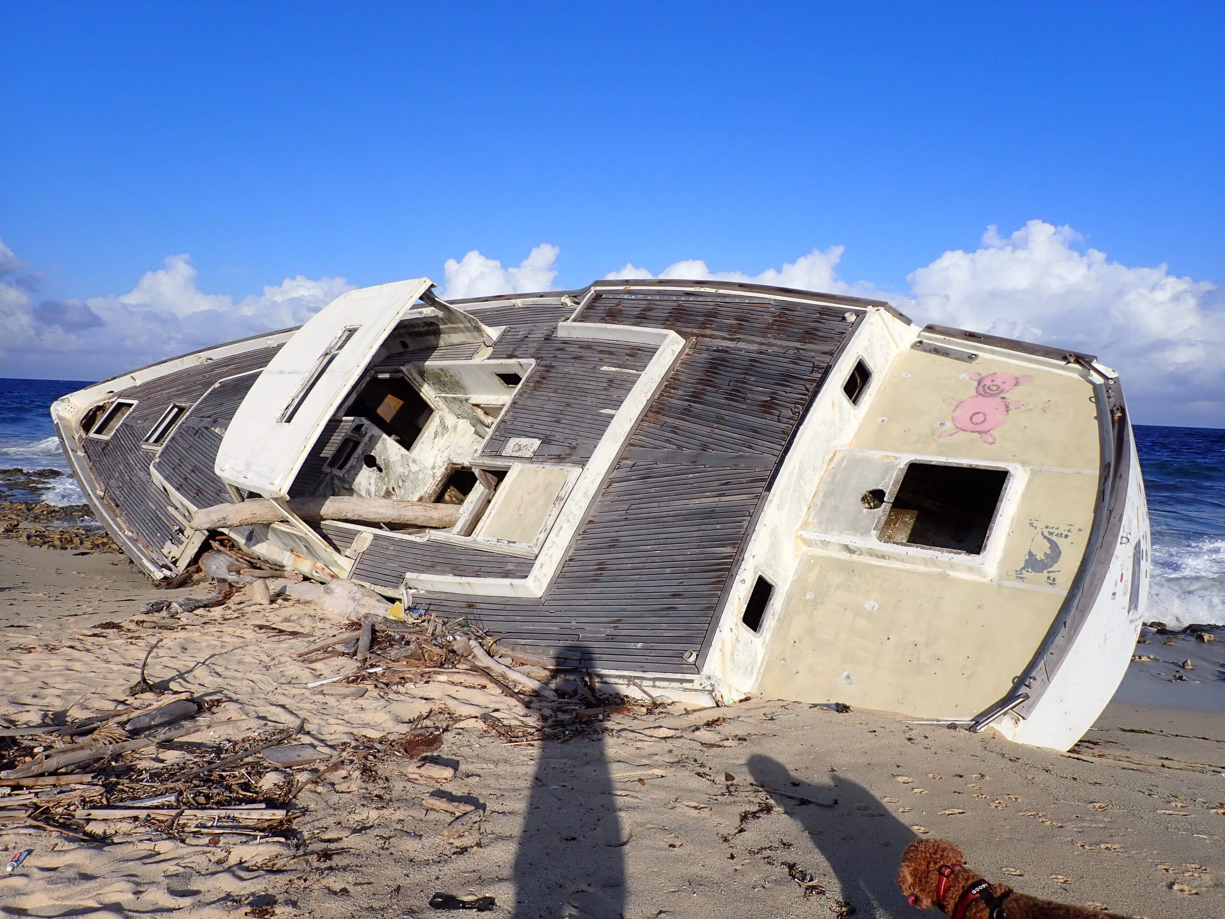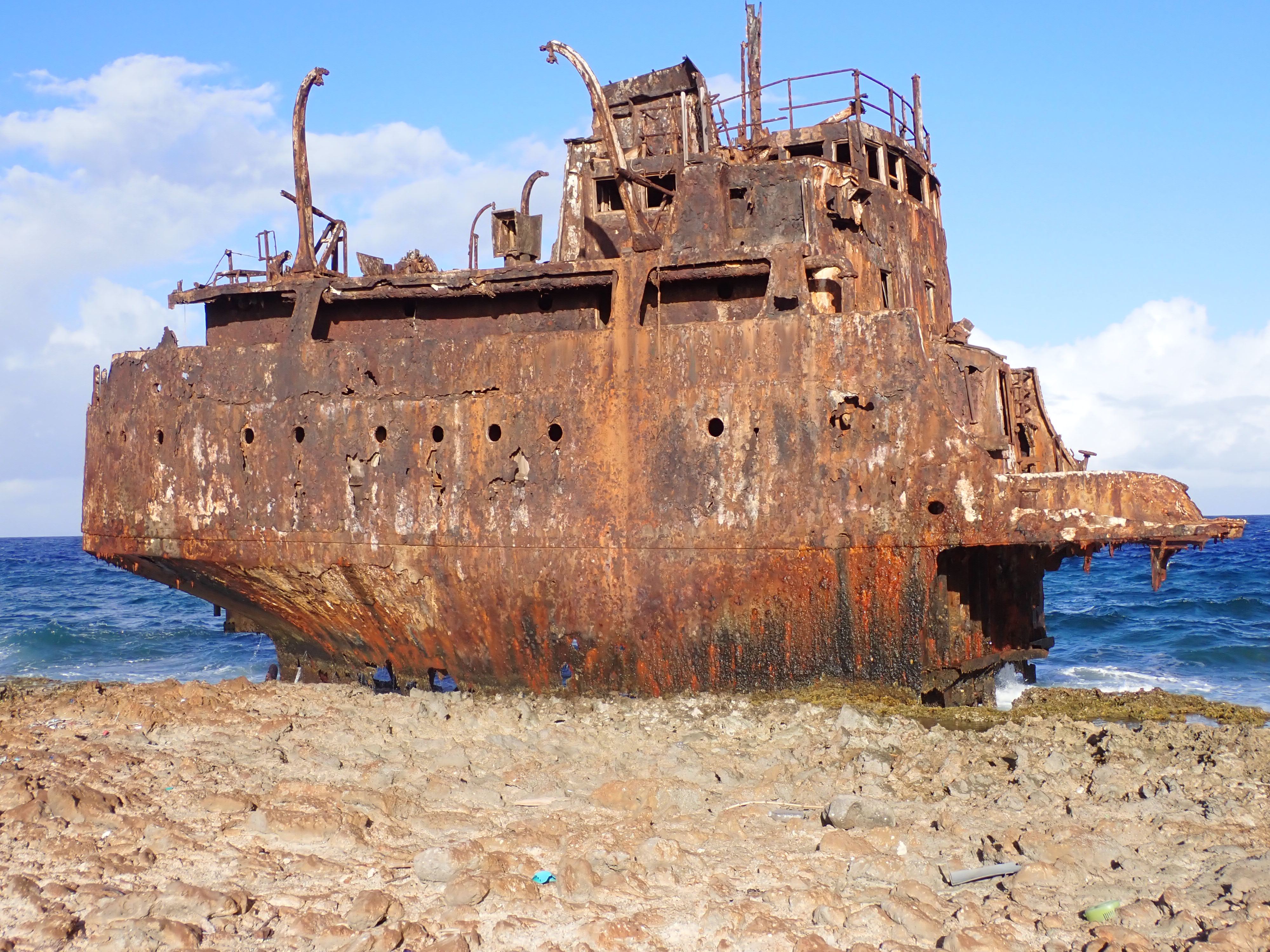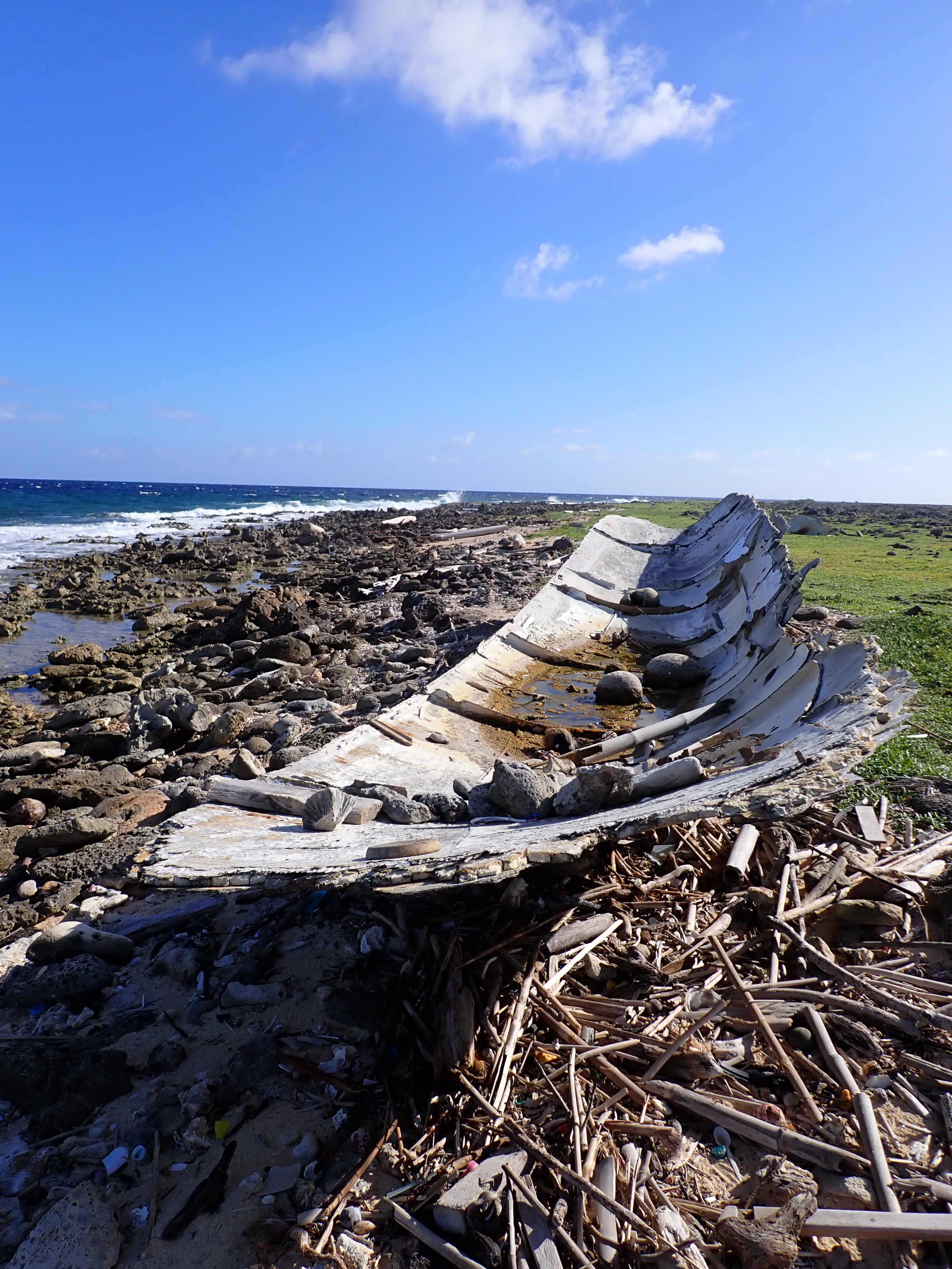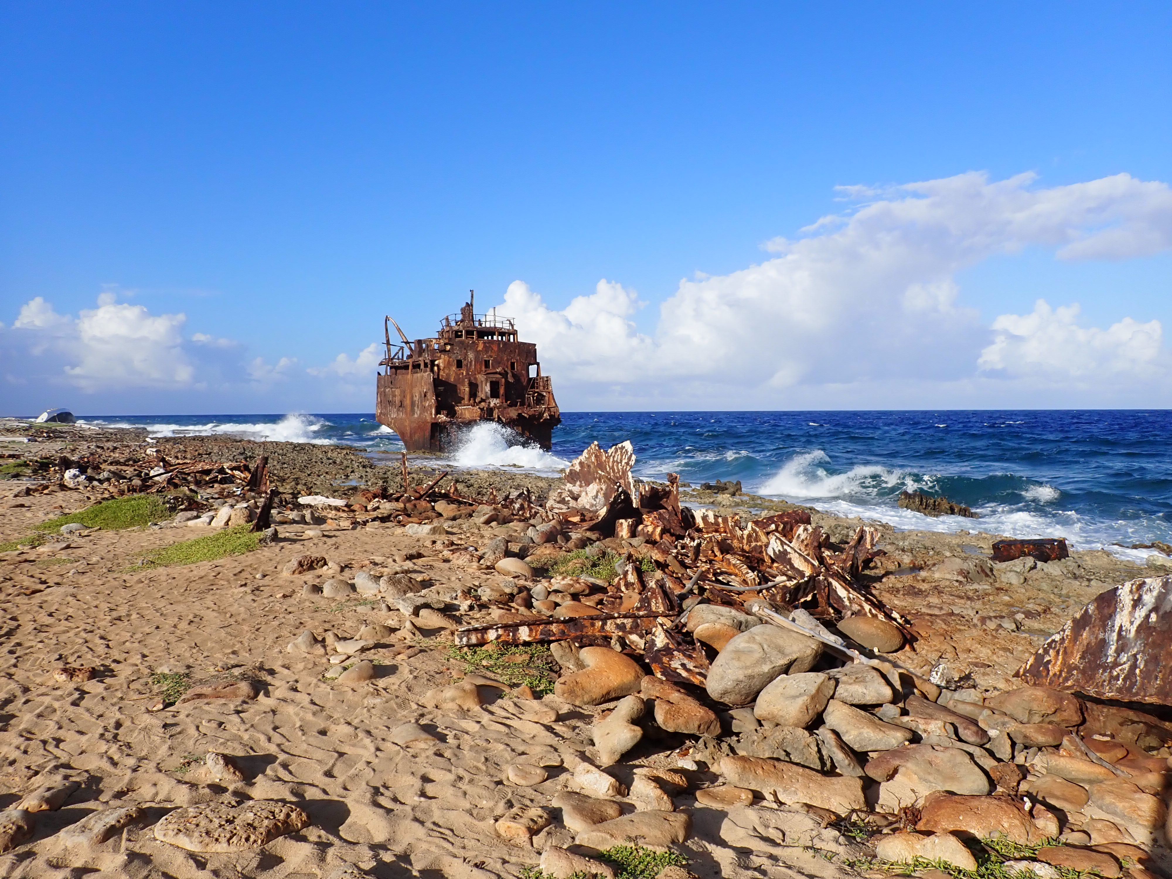 We walked the perimeter of the island along the white sand beach and round the “back side” with crashing waves and sea wrecks.