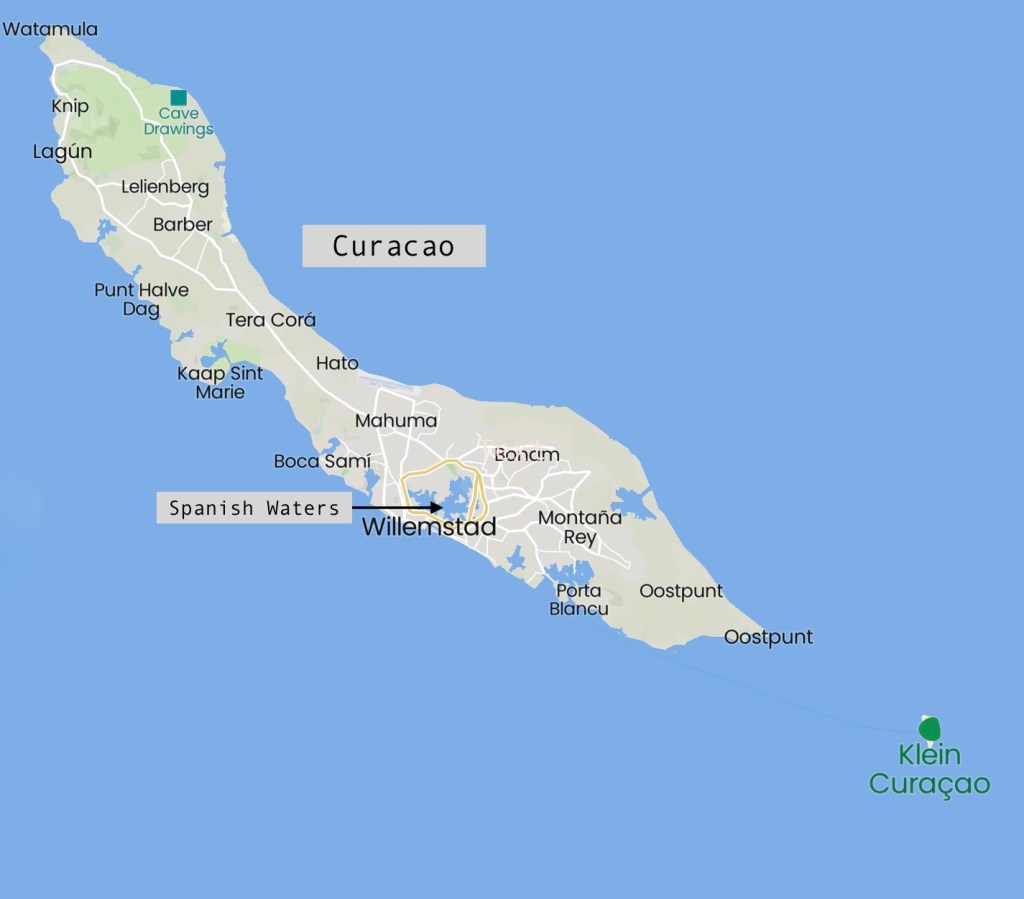 We are currently anchored in Spanish Waters, Curaçao. We just returned from a lovely 3 day stay in Klein Curaçao, a small, uninhabited island composed of exposed and eroded coral.