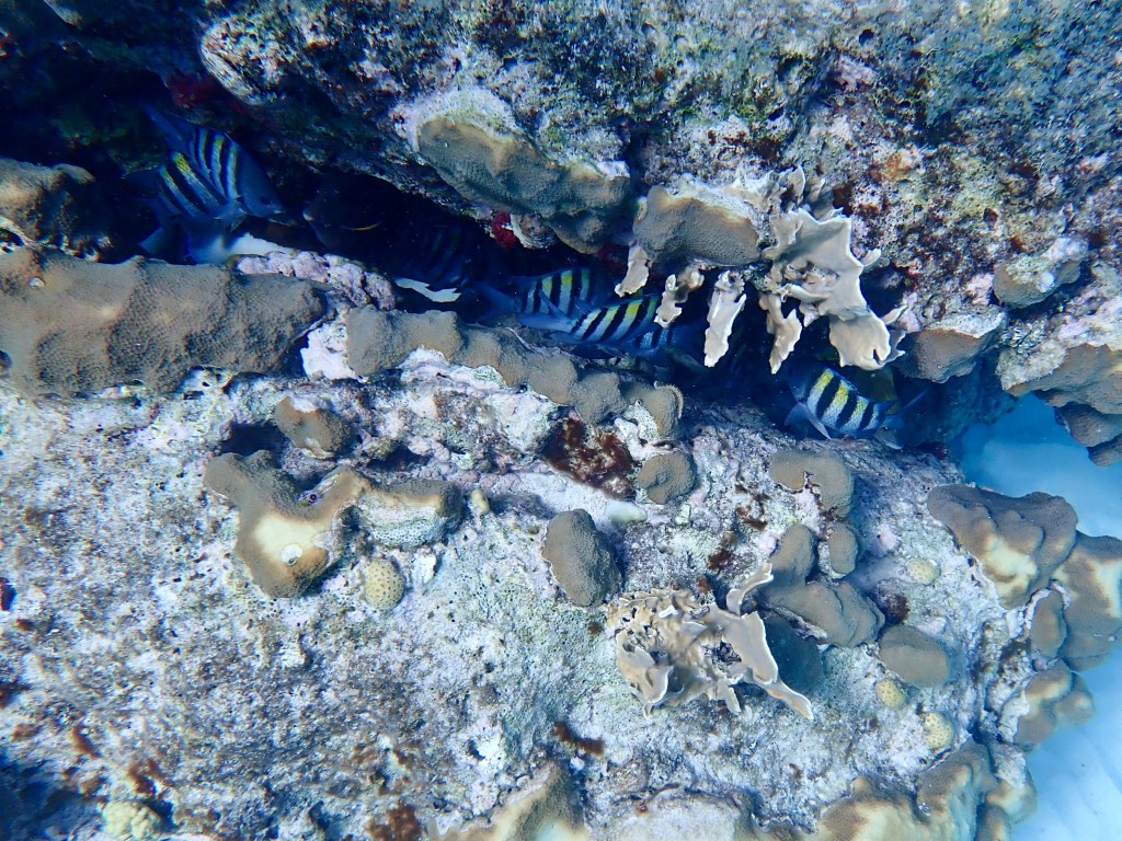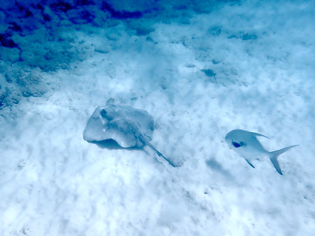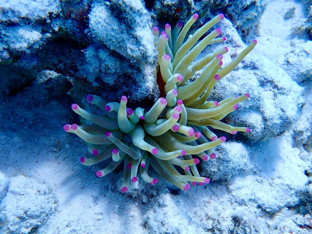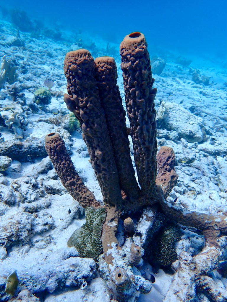 We used our Hookah, that delivers air to about 20 feet to explore underwater. Like scuba diving, the Hookah allows you remain underwater slowly taking in the details.