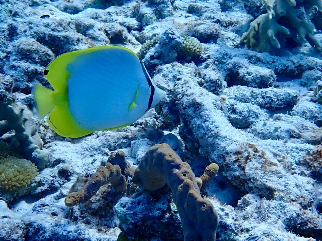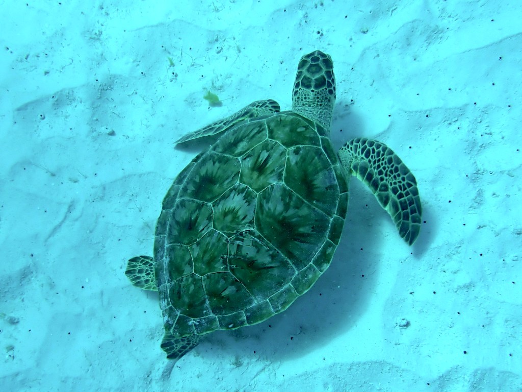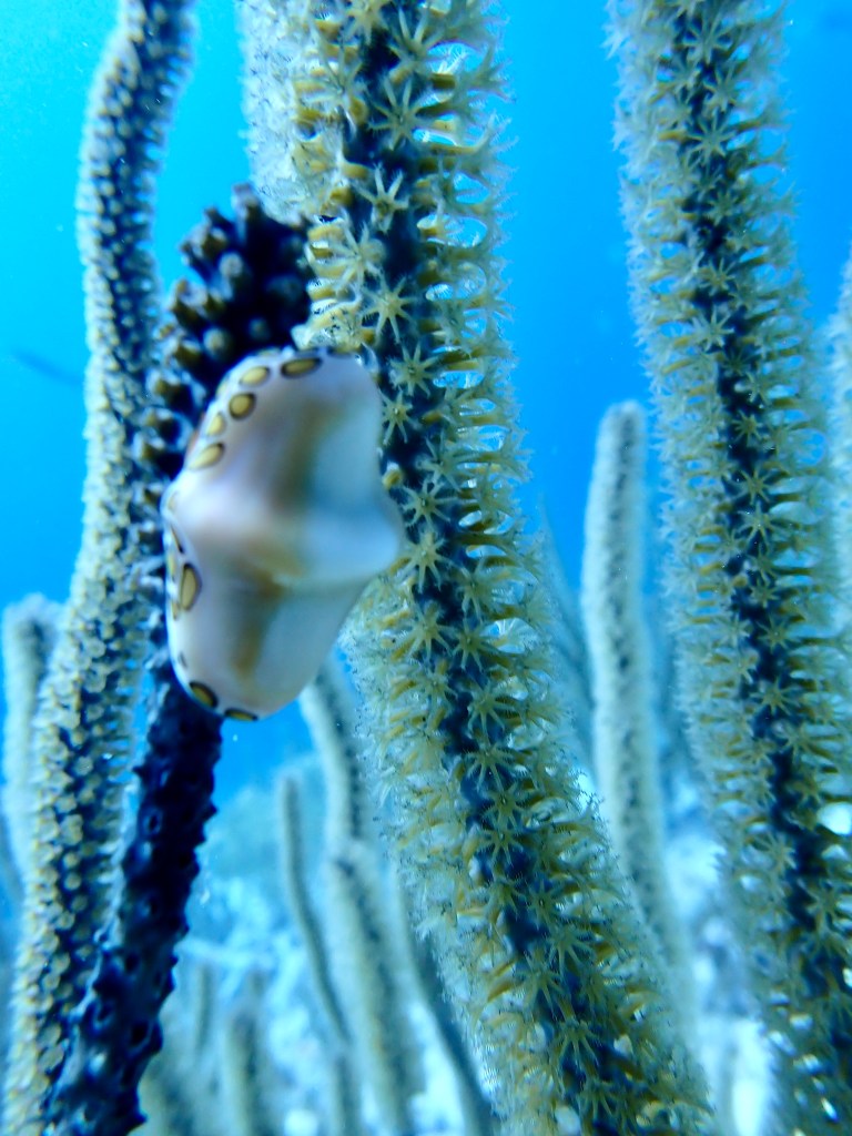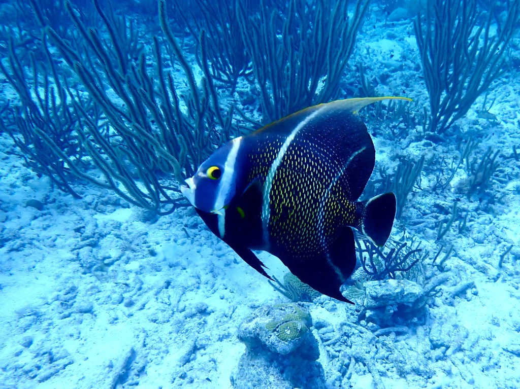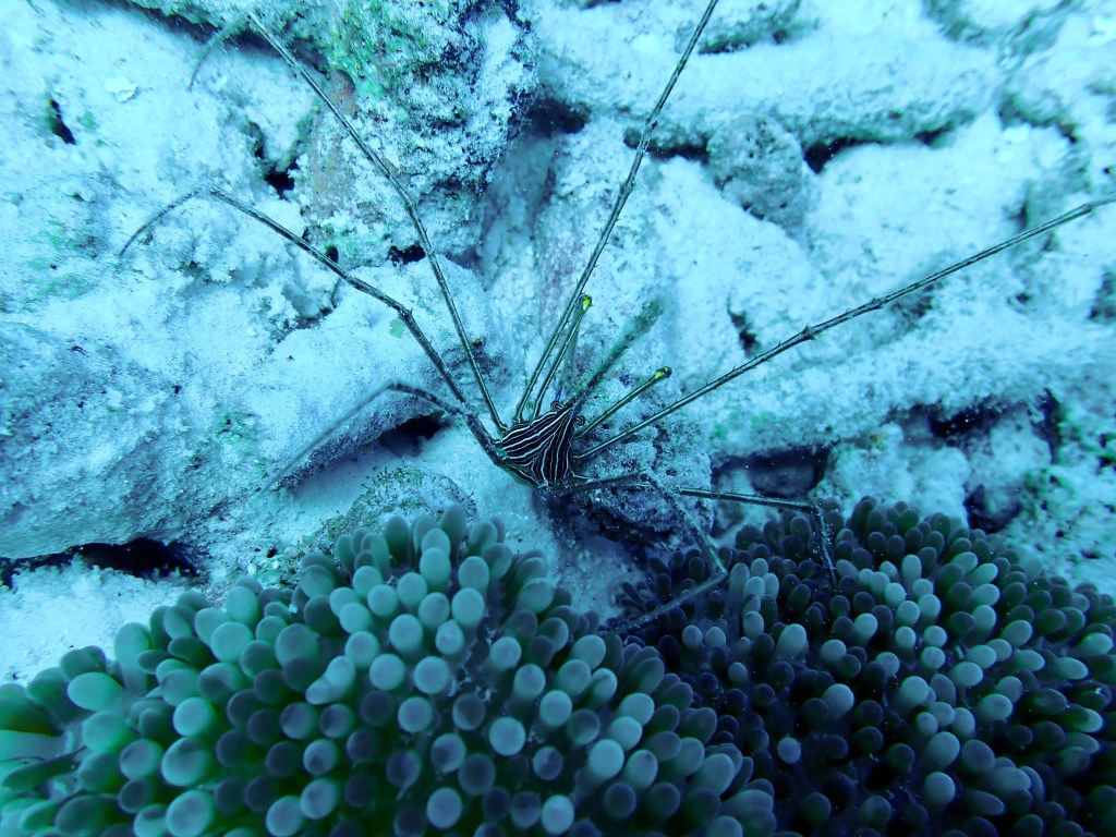 We used our Hookah, that delivers air to about 20 feet to explore underwater. Like scuba diving, the Hookah allows you remain underwater slowly taking in the details.