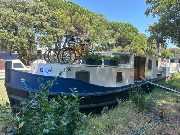 The four bicycles included in our purchase agreement for Detour were missing. The port manager and the Captainairie had no knowledge about them. Several weeks later we happened upon them. They were on a canal boat owned by the gentleman who moved Detour to Port de la Robine. Apparently after painting the top sides of Detour, he had to leave France suddenly. We expect he moved the bikes to his boat while he was painting and forgot to let anyone know.