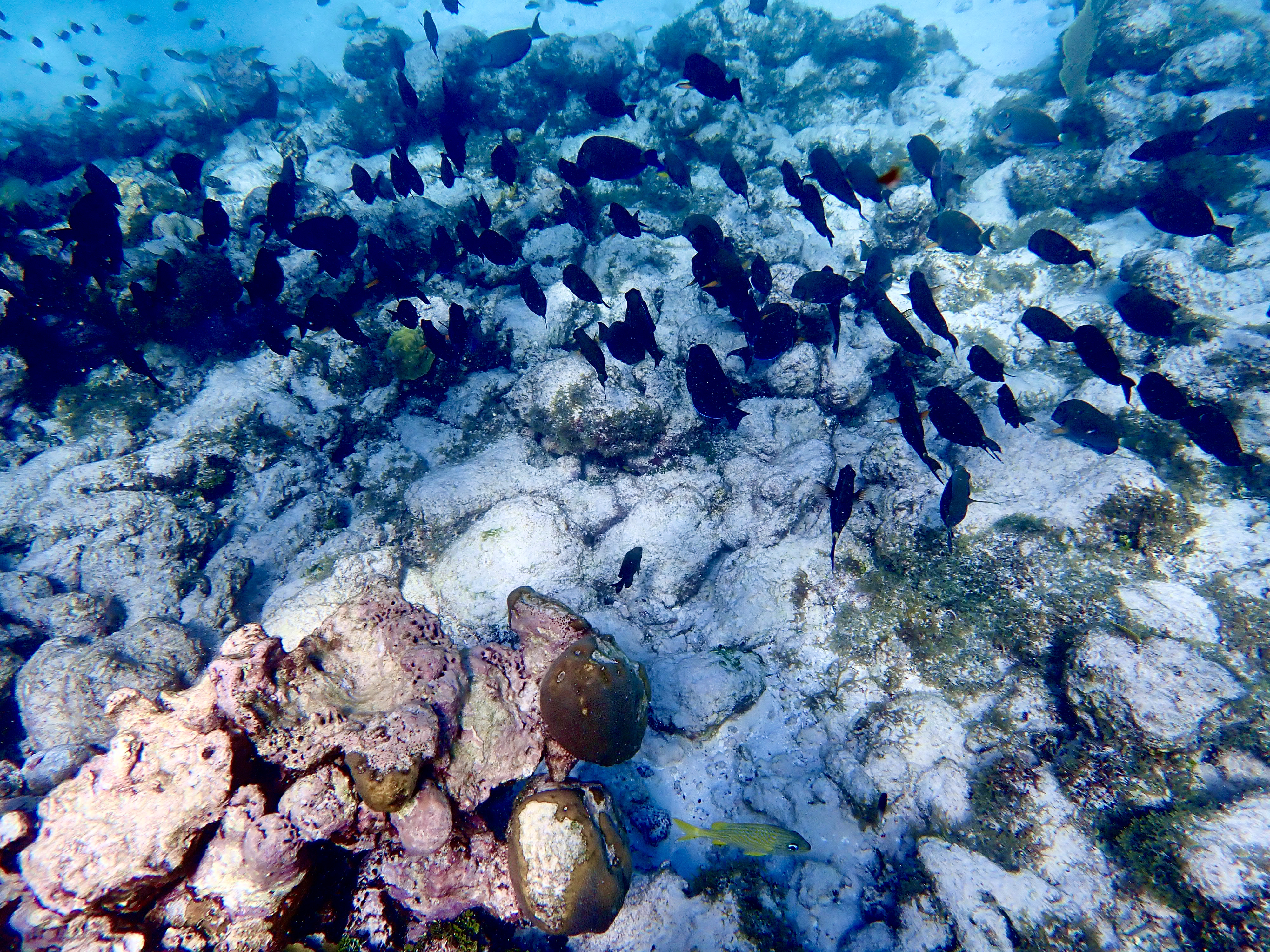Just to the north side of Baby beach we found Roger’s Beach. No accoutrements, but quiet, beautiful, and no chance Duhkxy would be of concern, we soaked for a time while Duhkxy ran on the beach and looked for ghost crabs.